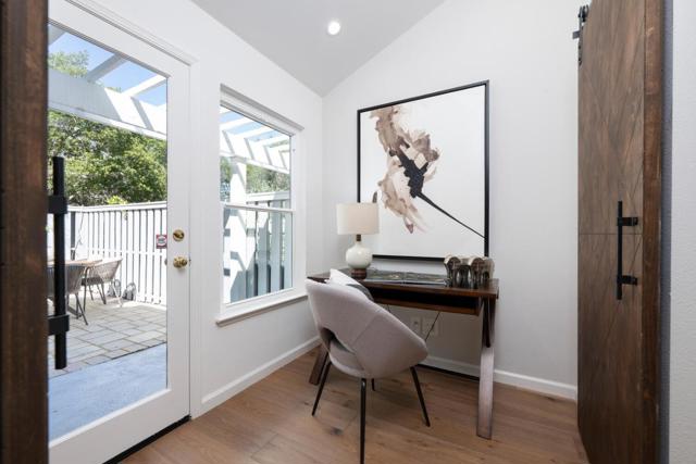 Step into resort-style living in the highly sought-after community of The Manors, where comfort meets convenience. This beautifully remodeled two-story retreat captures the essence of style beginning with a private, garden-like entrance leading to the inviting living/dining room ensemble featuring dramatic vaulted ceilings, a charming fireplace, and French doors that open to a private rear patio, perfect for seamless indoor/outdoor entertaining. The stunning, newly remodeled kitchen with top-of-the-line appliances and huge center island with convenient breakfast bar is a chef's dream offering the perfect setting for relaxed mornings, easy conversation, and everyday living. A cozy office with rear patio access, and a half bath round out the main level of the home. Upstairs, the luxurious primary suite is complete with vaulted ceilings, a private balcony, walk-in closet, and spa-inspired bath. Two additional bedrooms serviced by a hall bath complete the upper level. Residents can enjoy access to the community pool, scenic Redwood Shores trails, and Shannon Park, all just steps away, while being ideally located near top-rated schools, tech hubs, The Marketplace at Redwood Shores, the library, and scenic waterways - truly a lifestyle of effortless luxury, recreation, & convenience.