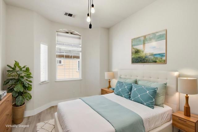Welcome to a charming home located in the vibrant city. This residence offers 1,091 sq ft of comfortable living space, featuring 2 bedrooms and 2 full bathrooms, each with a shower and tub combination. The master bedroom is complete with a walk-in closet, providing ample storage. The kitchen is well-equipped with a 220-volt outlet, sleek countertops, an oven range, and a refrigerator, making it perfect for cooking enthusiasts. The eat-in kitchen offers a cozy dining space. The home is designed with high ceilings and a blend of carpet and hardwood flooring, adding to its appeal. Relax in front of the fireplace, ensuring warmth during cooler months. For convenience, the laundry area is located on the upper floor and includes electricity hookup (220V), a washer, and a dryer. This home falls within the Alum Rock Union Elementary School District. Additional amenities include central AC for cooling and central forced air heating. A single-car garage provides secure parking. Don't miss this opportunity to own a delightful home with these wonderful features.
