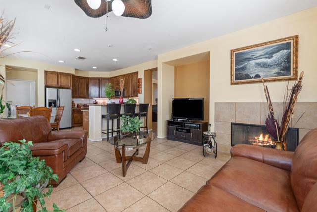 Located in the gated community of Talavera, this inviting home offers 3 bedrooms and 2 full bathrooms with a comfortable open floor plan and abundant natural light throughout the main living areas. The open kitchen overlooks the dining and living spaces, creating an ideal layout for both everyday living and entertaining. It features stainless steel appliances and kitchen counter pull-up seating for casual dining. The living room is centered around a cozy fireplace, adding warmth and character to the space.The spacious primary suite includes a large private bathroom and a walk-in closet, providing a comfortable retreat within the home.Conveniently located near shopping and dining, the home is also close to Shadow Hills High School and Desert Ridge Academy. Residents enjoy easy access to Interstate 10, making commuting and travel throughout the Coachella Valley simple.The Talavera community features six parks, playgrounds, BBQ areas, picnic spaces, and beautiful mountain views. The backyard is ready for your personal vision, offering a great opportunity to create the outdoor space you've always wanted. This home combines comfort, convenience, and the benefits of living in a well-maintained gated community.