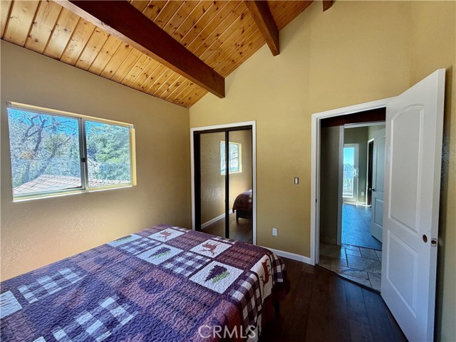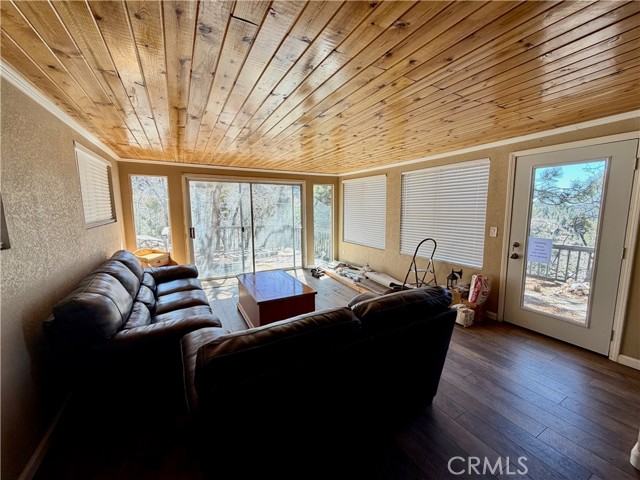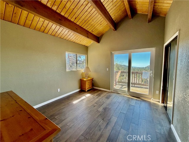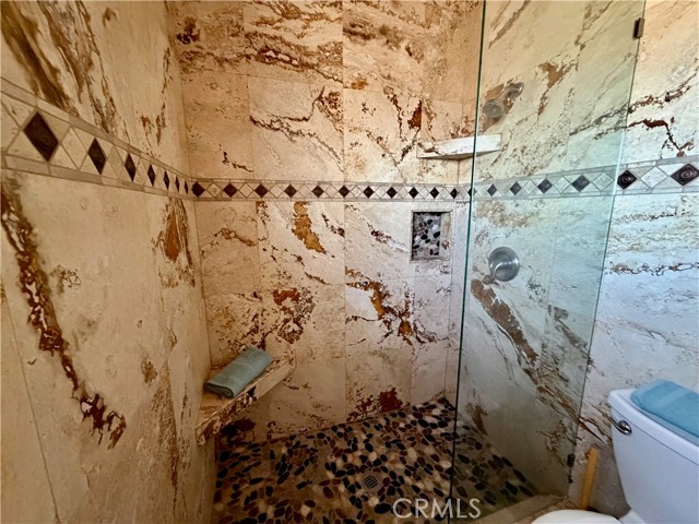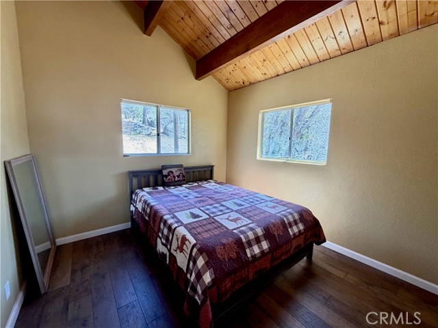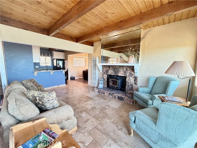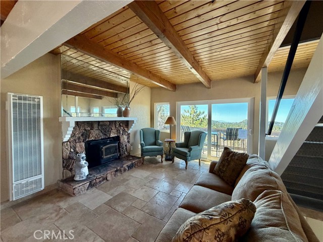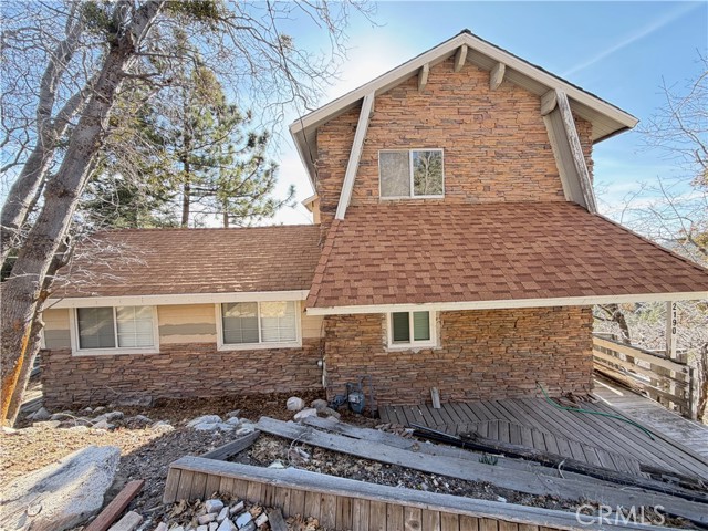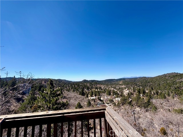 Perched at the top of the mountain, this tri-level cabin offers majestic views and a serene, private setting at the end of a quiet road surrounded by natural boulders. Featuring 2 bedrooms, 1.5 bathrooms, and a versatile bonus room that could serve as a 3rd bedroom, this home offers flexibility for full-time living or a weekend retreat. The main level showcases a warm and inviting living space with a wood-burning stove insert, knotty pine ceilings, and travertine tile flooring in the entry and living room. Multiple decks extend from this level, including a front deck with breathtaking views and a side deck off the family room with access to the yard and picnic area, creating seamless indoor-outdoor living. The kitchen is open to both the living and family/dining areas and features granite countertops, making it perfect for entertaining. A convenient half bathroom completes the main floor. Upstairs, you’ll find two bedrooms with knotty pine vaulted ceilings, including one with a walk-in closet and and its own private deck showcasing stunning mountain views. The full bathroom is a true highlight, featuring travertine tile flooring and a beautifully designed walk-in shower with rich natural veining. The lower level offers a laundry area and a flexible bonus space with its own private deck, ideal for a guest room, office, or potential third bedroom. Located just minutes from seasonal Arrowbear Lake for fishing, Arrowbear Park with playground and baseball field, as well as local ski resorts and hiking trails just steps away, this home is perfectly positioned for year-round mountain living. Remodeling has been started—bring your vision and complete this cabin to its full potential.