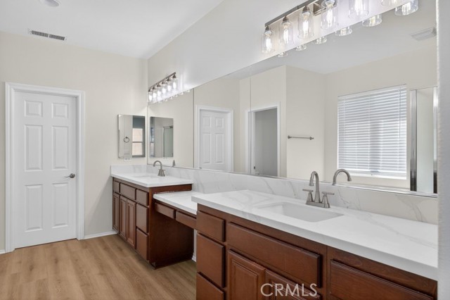 BIG ENOUGH FOR 2 FAMILIES. 1 BEDROOM & FULL BATH DOWNSTAIRS. This NEWLY REMODELED home has it all. It has NEW interior paint, NEW Exterior Paint, NEW wood laminate, NEW flooring, NEW carpet, NEW remodeled kitchen with NEW counter tops, NEW backsplash, NEW remodeled master bathroom, irrigation system, Central A/C and Heat, AND MUCH MORE. All you have to do is backup the moving truck!!! Hurry, this one won't last long
