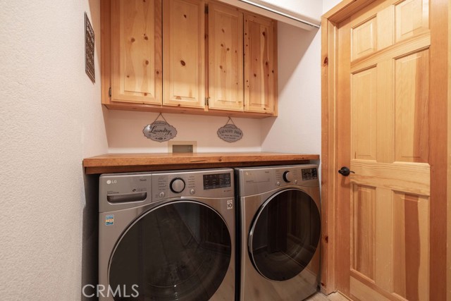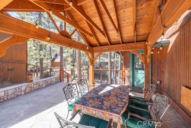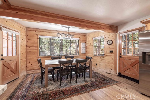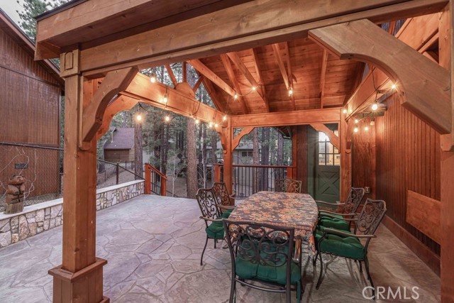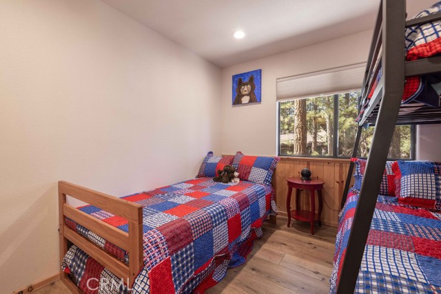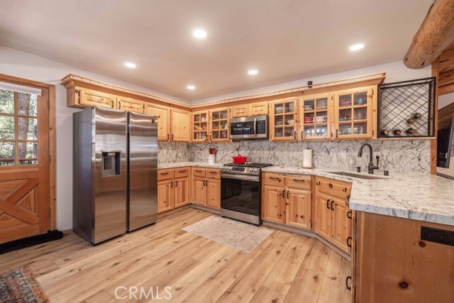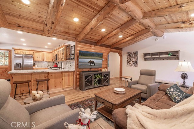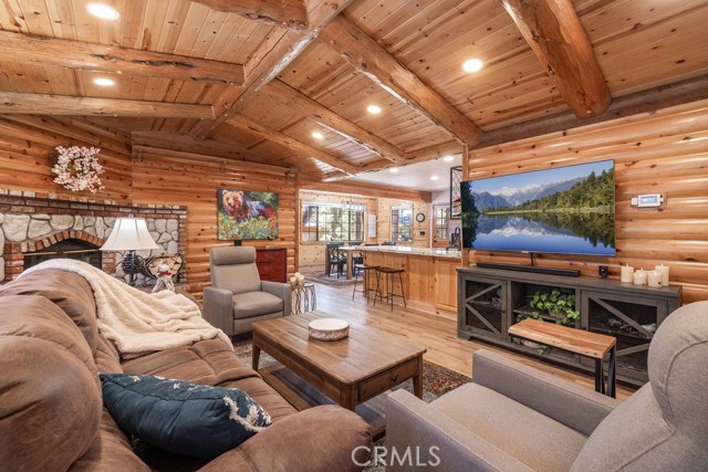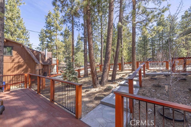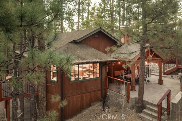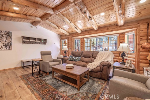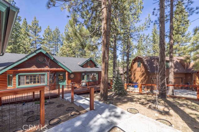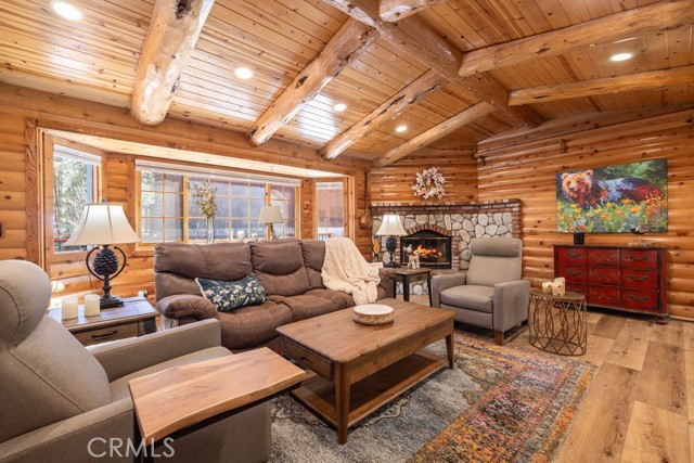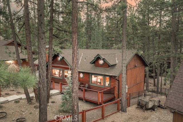 Nestled among towering pines on a quiet cul-de-sac, this beautifully updated log-sided cabin offers the perfect blend of mountain charm and modern comfort. Featuring 3 bedrooms and 2 baths, this home welcomes you with beautiful natural light, high ceilings, a stunning stone fireplace, and warm, inviting living spaces. Enjoy peaceful outdoor living with a spacious front porch, large patio with pergola, rear deck, and fully fenced yard—ideal for relaxing under the trees or entertaining. Thoughtfully updated throughout, new luxury vinyl plank flooring, new kitchen appliances, quartz countertops, stainless steel sink, updated bathrooms, lighting, new gas furnace and water heater, whole house exhaust fan, new washer/dryer, upgraded 200 AMP electrical panel and more. Recent exterior improvements include decking, concrete walkways, cedar pavilion, beautiful new trees and landscaping with drip irrigation. Located just minutes from Big Bear Lake, the Village, dining, and other activities including Oktoberfest, Snow Play, and more. Lovingly maintained and never used as a rental, this home also presents a fantastic opportunity for future rental income. Whether you're looking for a weekend escape or full-time retreat, this cabin captures the essence of mountain living.