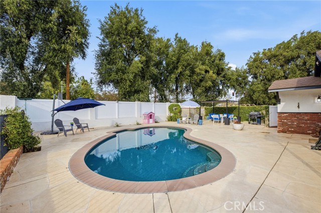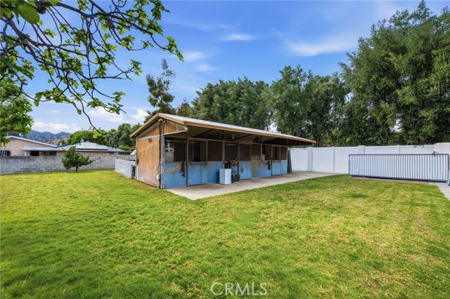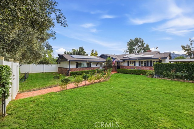 Welcome to this privately gated single level equestrian ranch home on a massive approx. ½ acre tree-lined corner lot primed for tremendous development opportunity! Add multiple ADU’s, sub-divide and build a separate home, level and build multi-family, etc., opportunities are endless. Property highlights include newer composition shingle roof, custom block and vinyl fencing, engineered hardwood flooring, gorgeous kitchen with granite counter tops, farmhouse sink, beautiful cabinetry and stainless-steel appliances opening to the dining area, living room with a brick fireplace, and multiple double French doors leading the relaxing pool area and garden. The spacious primary suite offers vaulted ceilings with exposed beams, ample closet space and large primary bath with dual sink vanity, and step in shower. The magnificent grounds include large grassy areas, sparkling pool with maximum sun exposure, covered patio and raised garden area. Other amazing property features include large driveway including automatic driveway gate, massive, flat yard space, 462SF horse stables with tack room with plenty of room to expand, lush landscape and large, mature trees lining the property offering extreme privacy. Close to top rated schools including Sierra Canyon, hiking and biking trails, restaurants and shopping, this property offers tremendous value and is truly a must see!