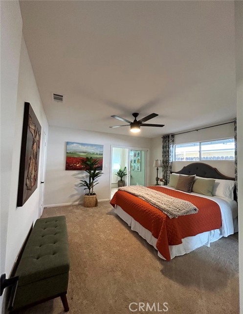 Welcome to this beautifully maintained single-story home in Hemet — a bright, comfortable space designed for easy living. Enjoy the convenience of central A/C and the added savings of solar panels included with the lease. Step through the impressive double-door entry into a home filled with natural light, neutral paint, and modern fixtures throughout. The spacious living room features a stylish fireplace, and an additional bonus living area offers the perfect spot to relax, work, or entertain. This immaculate home includes 3 generous bedrooms and 2 upgraded bathrooms, along with double-pane windows and laminate flooring in a neutral tone that complements any décor. The kitchen offers a clean, modern look with white countertops, plenty of storage, and an open flow to the dining area. The primary suite includes a large bathroom with double modern sinks and a separate shower for added comfort. Outside, the spacious backyard features a covered patio and a mix of grass and concrete — ideal for outdoor dining, play, or simply unwinding. A two-car garage adds even more convenience. With 1,518 sq ft of living space on a 7,405 sq ft lot, this home offers room to spread out while maintaining a warm, welcoming feel. ** FURNITURE IS NOT INCLUDED **