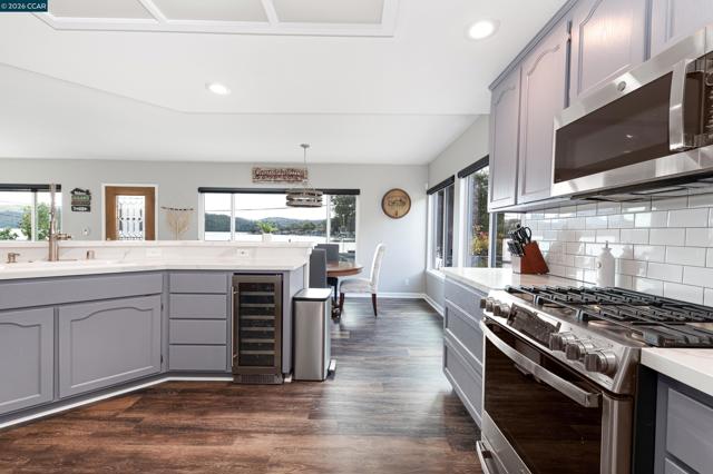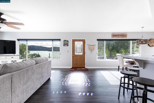 One-of-a-kind lakefront home in desirable Monitor Cove with extraordinary views of Clear Lake and Mt. Konocti. This beautifully updated custom-built 5-bedroom, 3.5-bath home is ideal for generational living, a vacation retreat, or year-round lake living. Bright open floor plan designed for entertaining and creating lasting family memories, featuring expansive dual-pane windows with custom window coverings that capture stunning lake and mountain views throughout. All upstairs bedrooms offer lake views and open to a shared balconyperfect for relaxing, reading, or enjoying peaceful mornings by the water. The remodeled kitchen features modern finishes and updated flooring, creating a welcoming gathering space at the heart of the home. Approximately 2,350 sq. ft. of thoughtfully designed living space offers comfort and functionality. Property includes a detached two-car garage with workshop, fish sink, laundry area, and bathroom with stall shower and toilet (no sink). Enjoy true waterfront living with a private boat house and large dock, plus ample parking for boats and RVs. Clear Lake is world-famous for bass fishing and offers boating, swimming, hiking, and year-round outdoor recreation. Located about 3 hours north of the Bay Area and 2 hours from Sacramento International Airport, L
