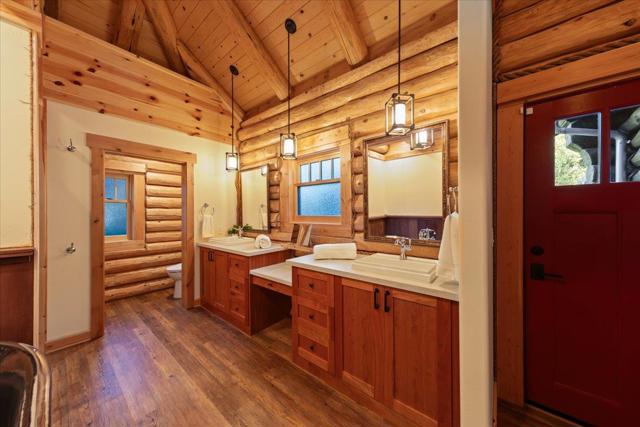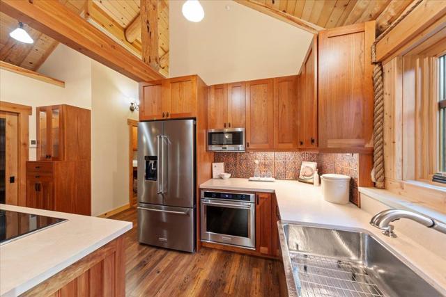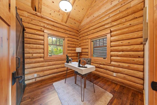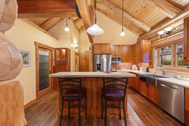 44 Pine Ave, Mount Hermon. Custom luxury log home built in 2021. 4BD/3BA main residence plus fully permitted 2BD/1BA ADU, totaling 6 bedrooms and 3,282 sq ft +/- of livable space. Set among towering redwoods in one of the Santa Cruz Mountains' most coveted private enclaves, Mt. Hermon offers scenic trails, peaceful redwood streets, and a park-like atmosphere worlds away from Silicon Valley yet less than an hour via Hwy 17. Mt. Hermon property owners receive exclusive resident access to the recreation campus: free summer trails, meadows, sports courts, game room, plus discounted Redwood Canopy Tour, Sequoia Aerial Adventure, and pool. Main residence features open beam ceilings, vaulted great room, stone gas fireplace, radiant floors, ground-floor primary suite with oversized tub, stall shower, walk-in closet, quartz kitchen with island and pantry. ADU above 3-car garage includes workshop and EV Level 2 hookup ideal for multigenerational living, guests, or income. Outside: deck, fire pit, BBQ, fenced yard, gray water system. Metal roof, fire sprinkler, video/audio security, Energy Star appliances, tankless water heater. Walk to trails. Minutes to Pasatiempo Golf. Silicon Valley via Hwy 17 under one hour. Priced below automated valuation and well below replacement cost!