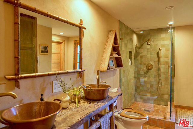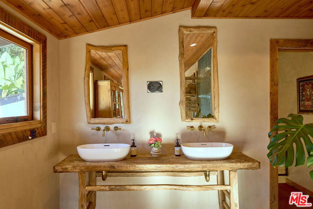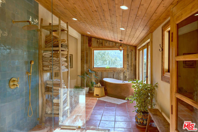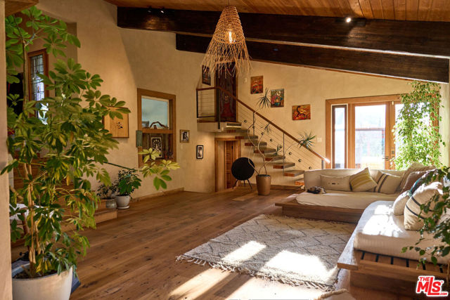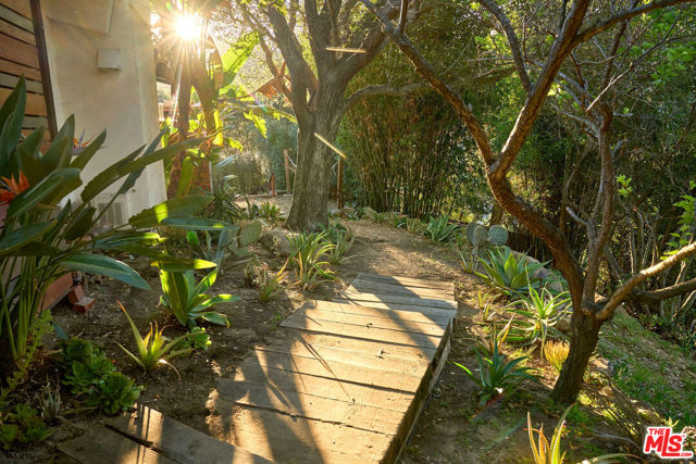 Set on approximately 1.85 acres of usable, sun-drenched land in the heart of Topanga Canyon, this is more than a home it's a living, breathing experience of canyon life at its most soulful. Perched gracefully on a gentle knoll, the property offers a rare blend of privacy, creativity, and connection to nature, where warm southern light filters through mature oaks, cool ocean breezes drift up from the Pacific, and expansive canyon views unfold in every direction. The grounds are a true sanctuary, featuring flat grassy lawns, view decks, flowering native gardens alive with hummingbirds, mature fruit trees, and winding pathways that lead to hidden moments throughout the landscape. Bamboo groves, shaded seating areas, and sunlit spaces designed for gathering, reflection, and everyday living under the sky. From the moment you enter, the outside world fades, replaced by a sense of calm, openness, and possibility rarely found in Los Angeles. The main residence has been thoughtfully reimagined with an emphasis on natural materials and craftsmanship, blending reclaimed wood ceilings, artisan detailing, and expansive windows that frame the surrounding landscape. The living spaces are warm yet refined, with an open flow that invites both quiet mornings and effortless entertaining. The kitchen is clean and functional, offering an inspiring space to cook and gather, while the primary suite serves as a private retreat, anchored by a spa-like bathroom with a freestanding soaking tub, walk-in shower, and a serene, restorative atmosphere. Additional bedrooms provide comfort and flexibility for family or guests. Complementing the main home are multiple detached and semi-detached living spaces, each with its own sense of privacy and purpose, offering exceptional versatility for guest accommodations, creative studios, home offices, or potential income use. These spaces enhance the property's ability to function as a true compound, supporting a range of lifestyles from full-time residence to live/work retreat. The land itself is the defining feature nearly two acres of usable, beautifully integrated terrain that allows for play, exploration, entertaining, and expansion of vision over time. Whether hosting gatherings under the stars, cultivating gardens, or simply enjoying the quiet rhythm of canyon life, the setting offers a rare opportunity to live immersed in nature without sacrificing proximity to the Westside. A property of uncommon scale, warmth, and intention, this is Topanga living fully realized...private, expansive, and deeply connected to the land.