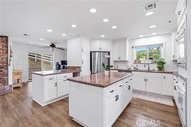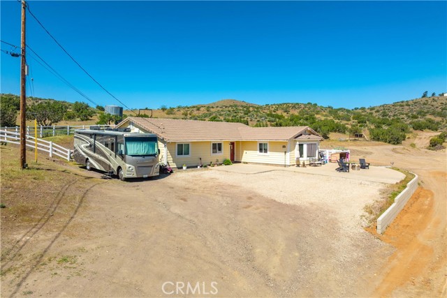 Serene 4 Bed 2 Bath Acton Home with Stunning Panoramic Views! Looking for the comfort of country living with a modern aesthetic? Look no further than this beautiful 2,193sqft home sitting on 4.95 acres and million dollar views! Entering the home, you are greeted with an open floor plan & the perfect balance of comfort and elegance with recessed lighting, beautiful flooring and the grand bay window with seating. You could spend hours seated at this window, soaking in the breathtaking views, letting stress melt away, and that is just the beginning of the comforts this home has to offer. The large living room abounds w/versatility and space for large family gatherings. Inconspicuously placed between the living room and kitchen, you will find the laundry w/tons of storage and access to your back yard. Adjacent to the living room, enjoy a cozy family room w/stunning brick fireplace and room for a pair of club chairs and couch for the family to curl up and enjoy a good read. From this comforting space, there are open sightlines to the cheerful, efficient kitchen that offers ample storage, large center island, beautiful countertops, double ovens & great view of your property. Just off the kitchen is another great space offering the opportunity for dining or bonus space w/built in shelving, storage & access to the back yard. Positioned just off the family room is a short hall that guides you the first sizable bedroom on your right, the second large bedroom on the left, at the end of the hall the third bedroom and beautiful shared bathroom w/elegant fixtures and calming tones. Rounding out the bedrooms is the primary suite w/dual closets, elegant bath w/dual sinks and large walk in shower. Outside, bask in the beautiful surroundings & endless possibilities for your 5 acres. Have horses? Need an ADU? Want to put in a Pool? Yes, yes and yes, the world is your oyster. You will also enjoy the benefits of county water, leased solar and the beauty of Acton country life