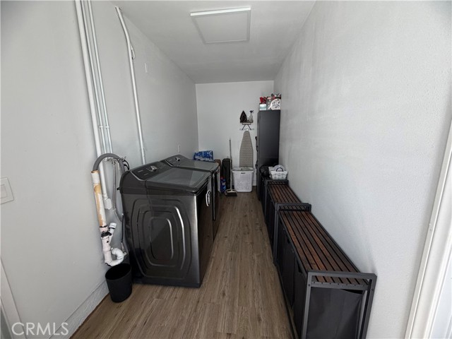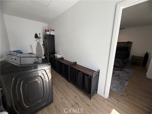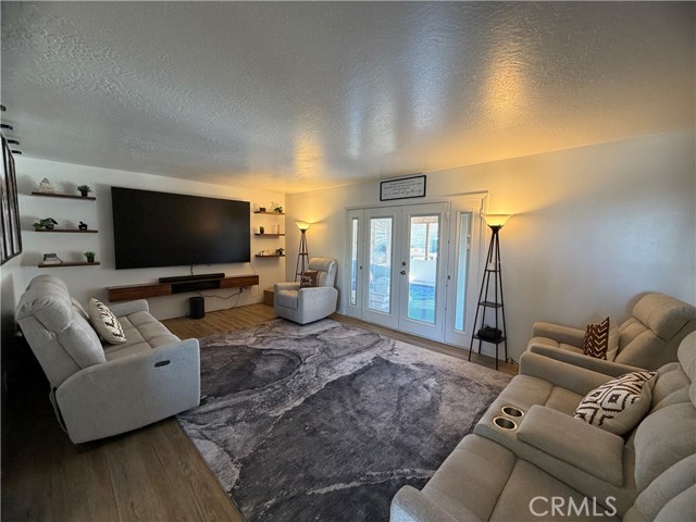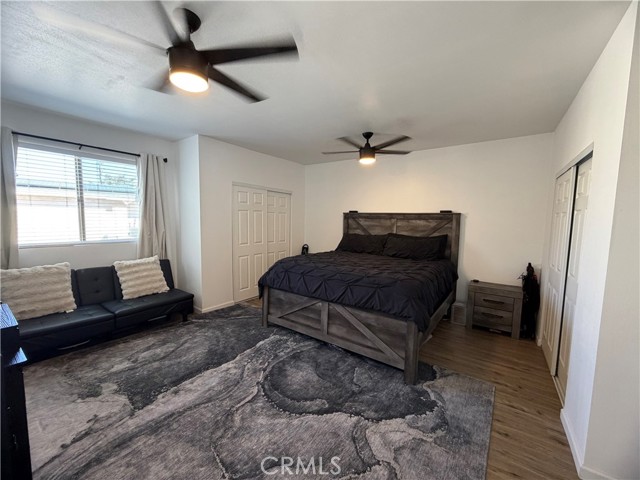 Beautifully updated home offering flexible living space and thoughtful upgrades throughout! Originally a 3-bedroom, 2-bathroom home with a 2-car garage, the garage has been tastefully converted into a spacious additional bedroom along with a separate indoor laundry room—ideal for added functionality. The original garage door remains in place, allowing for an easy conversion back to a garage if desired. The interior showcases modern updates, including solid surface flooring throughout, a stylish kitchen with granite countertops, an undermount sink, custom cabinetry with updated hardware, and a functional layout. Both bathrooms have been upgraded with contemporary vanities and sleek, lighted mirrors. Enjoy the fenced front yard with chain link fencing and a welcoming patio area accented by stacked brick edging—perfect for relaxing outdoors. The backyard features a large covered patio, offering plenty of space for entertaining. The property previously featured an in-ground pool and spa. The spa has been filled, and the pool will be professionally filled with proper permits prior to close of escrow. Home offers approximately 1,168 square feet of living space (not including the converted garage). Don’t miss this versatile and move-in ready property with room to customize to your needs!