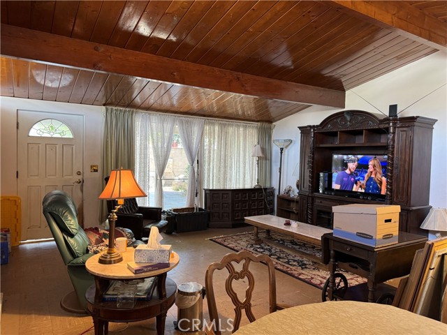 Attention Investors and Handy-Homeowners looking for good bones. This may be just what you’re looking for. Original Mid-Century Modern home with the same owners since 1964 sitting on a large cul-de-sac lot. You enter into the open floor plan which encompasses the Living Room, Dining area, and Kitchen, all under the vaulted ceiling with exposed wood beams and tongue-and-grooved boards which still retain their natural finish. Down the hallway you’ll find the Primary Bedroom and attached Bathroom featuring the original pedestal sink and a shower stall with the original tile. There are two additional bedrooms and another bathroom. The expansive backyard is a raw canvas, possibly large enough to add a pool and an ADU. The two-car garage and wide driveway are suitable for parking several cars with room for your RV as well. The house has had some deferred maintenance, most likely going to need a roof and some fascia board repair but the bones are good and the cul-de-sac location and large lot are worth the effort.