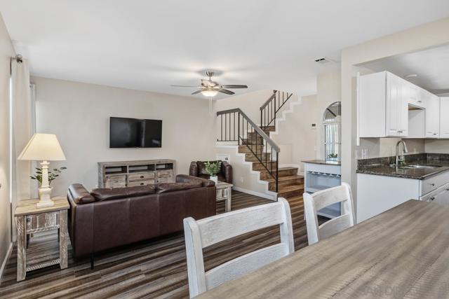 A rare opportunity in the highly desirable Tamberly community of Santee! This charming townhome offers exceptional privacy with only one shared wall and no one above you, creating a quiet and comfortable living experience. VA approved! Featuring 2 bedrooms and 1.5 baths, this bright and inviting home showcases a spacious primary suite with dual closets, along with ceiling fans in all bedrooms for year-round comfort. Recent upgrades include new waterproof luxury vinyl flooring throughout, modernized bathroom fixtures and cabinetry, and added convenience with a washer and dryer located in the attached garage. Enjoy a functional layout filled with natural light, perfect for both relaxing and entertaining. Ideally located near parks, shopping, dining, and easy freeway access, this home combines comfort, style, and convenience in one of Santee’s most sought-after communities. Don’t miss your chance to own in Tamberly—opportunities like this are rare!