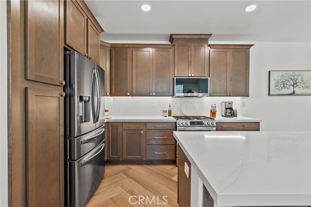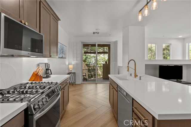 Discover the perfect blend of style, comfort, and convenience in this beautifully updated home, ideally situated in the picturesque and highly desirable community of Stevenson Ranch. Stunning updates include elegant chevron flooring, the kitchen is adorned with sleek quartz countertops, modern cabinetry, and premium appliances—all newly completed just last year. Enjoy peaceful mornings or unwind in the evening on your private balcony overlooking a tranquil greenbelt, located just off the dining area for seamless indoor-outdoor living. This inviting residence offers 2 spacious bedrooms, 2 tastefully remodeled bathrooms, and 1,130 SqFt of well-designed living space. Additional highlights include an in-unit laundry area and a convenient 2-car attached garage. Residents of the Treana neighborhood enjoy fantastic amenities, including a sparkling community pool and spa. With close proximity to shopping, dining, top-rated schools, and easy freeway access, this home delivers both comfort and an exceptional lifestyle. Opportunities like this don’t come often—make it yours before it’s gone.