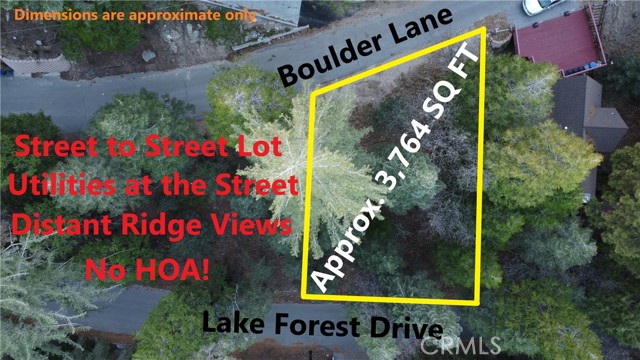 Great down sloping street to street lot in the popular Twin Peaks area near Lake Arrowhead. Nearly 4000 SQ FT of lush woodsy land with big pines, cedars and oaks all around. Experience all 4 seasons with lakes, skiing, hiking and off road trails nearby. All utilities (water,sewer,gas,electric,phone, internet,cable) conveniently located at or near the street. Lots to the right are vacant so there's a nice sense of privacy and being in the woods. Don't miss out on this picturesque mountain lot at a great price...make your offer today!