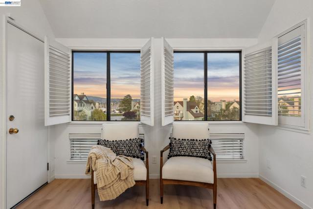 Located in Alameda's picturesque Marina Village neighborhood overlooking a freshwater lagoon on Alameda's main island, this contemporary, move-in-ready property features 2 BR, 3.5 BA, an open LR/DR combination, an updated kitchen, a detached garage, 2 decks, and a spacious lower level bonus space w/a separate entrance - all with beautiful lagoon, marina and Oakland hills views. Conveniently situated across from the Marina Village Shopping Center with a variety of services, eateries, and stores, the location also provides close proximity to Shoreline Park, the Marina Village Yacht Harbor and the Webster/Posey tube for easy freeway access. Details include cathedral ceilings, a gas fireplace, attractive LVP flooring, stylish light fixtures + a sophisticated kitchen w/granite counters & stainless steel Bosch + Fisher & Paykel appliances. Bedrooms are generously sized with high ceilings & large closets custom organizers. The sun-filled primary BR features a large ensuite bathroom w/a double vanity + a hydrotherapy soaking tub. The versatile lower level has a private entrance, a full bathroom and deck, creating an ideal home office, gym or family room. The flexible floor plan with tranquil views and large, sun-filled rooms combine to make this an exceptional Alameda opportunity.
