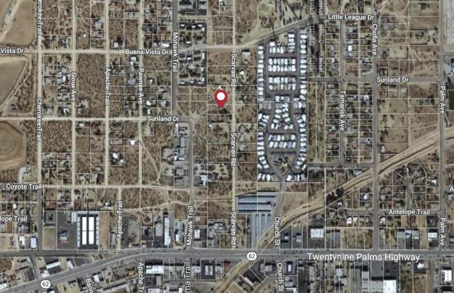 SCARVAN ROAD, YUCCA VALLEY $37,000.00: Desirable in-town residential lot offering .57 acres (24,890 sq. ft.) with dimensions of 95' x 261'. Located within walking distance to town on a quiet street north of Hwy 62, this level, well-maintained parcel features peaceful southern sunset views from the backyard and views of the nearby hills. Utilities--electricity, water, and sewer--are available in the street at the lot. Fenced on two sides and partially fenced in front; only the rear fence is needed. Currently has old trailer on property which possibly maybe removed by old owner. Current owner got land thru recent foreclosure and is motivated to sell! Owner Will Carry: $29,600.00 loan with 20% down ($7,400) at 7% interest, amortized over 5 years. Payments: $586.12/month + $15 monthly loan service fee. APN: 0595-013-33-0000.Directions: From Hwy 62, go north on Scarvan Rd approximately 1 mile. Property is on the west side.