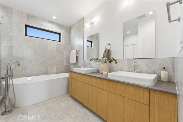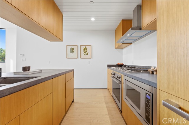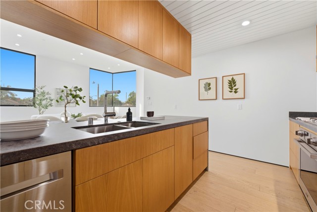 Tucked into a coveted corner lot in Mar Vista, this newly built 3-bedroom, 3-bathroom home is the kind of place that stops you in your tracks. Designed by award-winning architect Robert Thibodeau, the 2,315-square-foot residence pulls off something rare. Inside, the layout breathes. Soaring ceilings and warm hardwood floors stretch across a seamlessly connected living, dining, and kitchen space that's built for both everyday comfort and effortless entertaining. The kitchen is finished to a gourmet standard, and smart home features — including a programmable thermostat and full central HVAC — keep everything running exactly how you want it. The top-floor primary suite is a genuine retreat. Think spa energy: a deep soaking tub, marble finishes, and the kind of calm you don't expect to find this close to the city. Throughout the home, custom closets and thoughtfully designed built-ins mean storage is never an afterthought. When it's time to entertain, head up to the roof deck. Panoramic city views, a fire pit, and open sky make it the kind of outdoor space people linger on long after dinner. A private entrance and two-car garage round out the practical side of things. All of this, with Culver City, Venice, and Santa Monica just minutes away. It's LA living at its best — with a little New York edge thrown in.