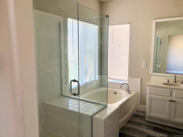Beautiful home in gated community. Nicely updated with hard wood floors throughout. Kitchen has custom gray cabinets with granite counters and custom backsplash. Stainless appliances, refrigerator included. Located on a cul-de-sac and near the community pool. Large yard with pergola and fire pit. Near local schools and just minutes from shopping, freeways and the beach.