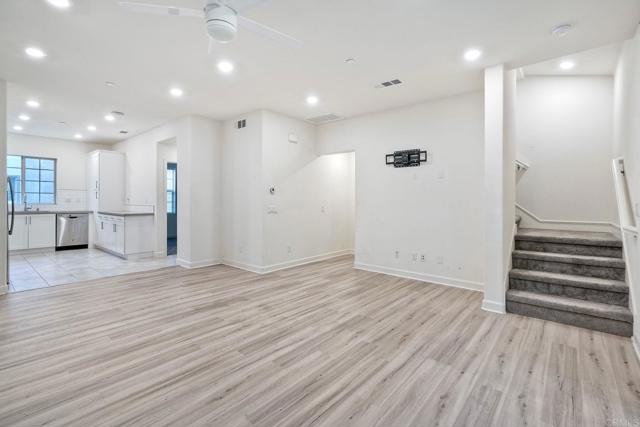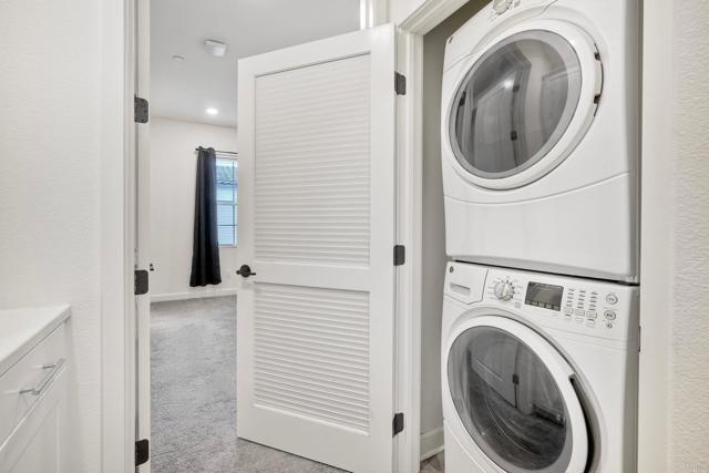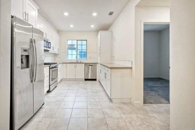 Welcome home to this stunning, upscale 3 bedroom, 3 bathroom townhome located in the exclusive, gated Collection at St. Cloud community. Built in 2019, this beautifully designed three-story home offers 1,521 sq. ft. of modern living space with an open floor plan, spacious kitchen with white cabinetry and quartz countertop, one bedroom and full bathroom on the main floor, and a bright living room with ceiling fan and a private covered balcony. Other key features include stainless appliances, a stackable washer/dryer included, secondary room with en suite full bath, primary bedroom with dual sinks and walk-in closet, and a side-by-side 2 car attached garage. Enjoy the Luxury community amenities at The Cabana Club including resort-style swimming pool & spa, elegant clubhouse, fully-equipped cardio room, beautifully landscaped common areas, and pedestrian-friendly streets & sidewalks. Nestled in a desirable location, offering easy access to schools, parks, shopping, and dining. Only a few minutes drive to the Front Wave stadium and vibrant downtown Oceanside and Carlsbad beaches. You'll love living here!