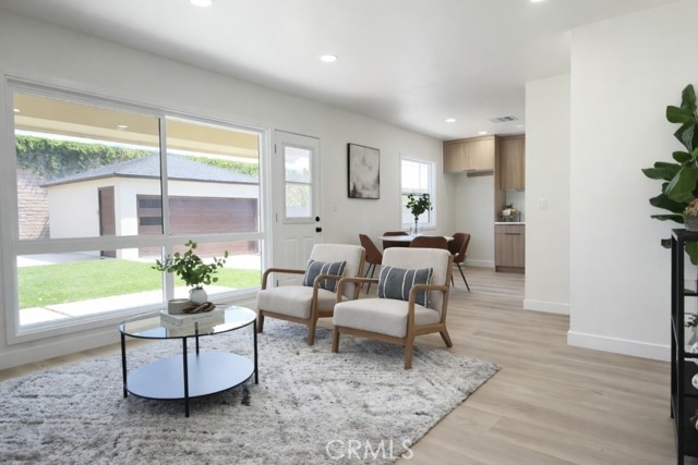 Don't miss this beautiful, fully renovated 2-bedroom, 1-bath home situated on a huge lot in a desirable Norwalk neighborhood. This move-in ready property is the perfect opportunity for first-time buyers or anyone looking for a clean, modern home with room to grow. Step inside to a bright and inviting interior featuring large windows that flood the home with natural light, complemented by new recessed lighting throughout. The home has been thoughtfully updated with new laminate flooring, fresh interior and exterior paint, and stylish finishes that create a warm, contemporary feel. The upgraded kitchen showcases granite countertops, updated cabinetry, and a functional layout ideal for everyday living and entertaining. A dedicated laundry room adds convenience and practicality. Outside, the property truly shines with its expansive lot and a long driveway extending all the way to the backyard, providing ample parking and flexibility. The detached garage offers excellent ADU conversion potential (buyer to verify), making this home a great option for future expansion, rental income, or multi-generational living. With its modern upgrades, spacious lot, and versatile layout, this home is a great starter opportunity with long-term upside. Don’t miss your chance to own a turnkey property with endless possibilities!
