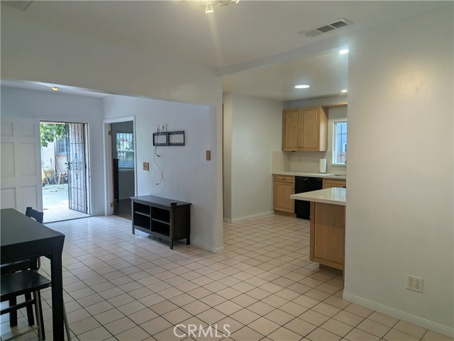 The home is the back unit on a duplex. The home has one doubled door spacious bedroom and a full bath. Large family/dining room. Upgraded kitchen with granite countertop with refrigerator. Large family/dining room. Television will be provided in the living room. Washer and dryer is available. New paint, new cabinets, new tiled flooring, C/A. The property is completely upgraded. Close to USC. Move in condition.