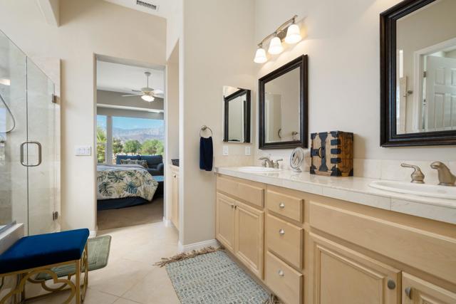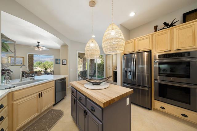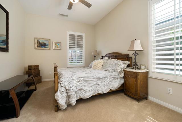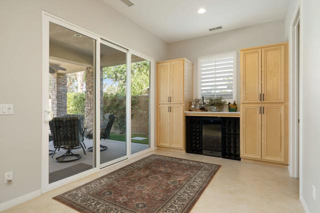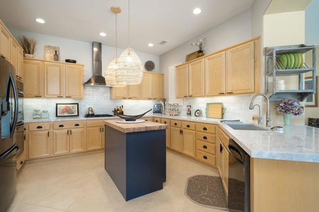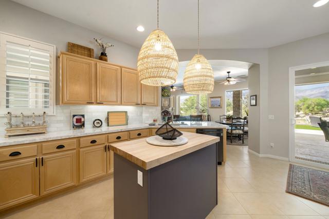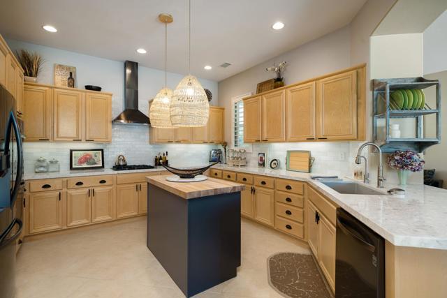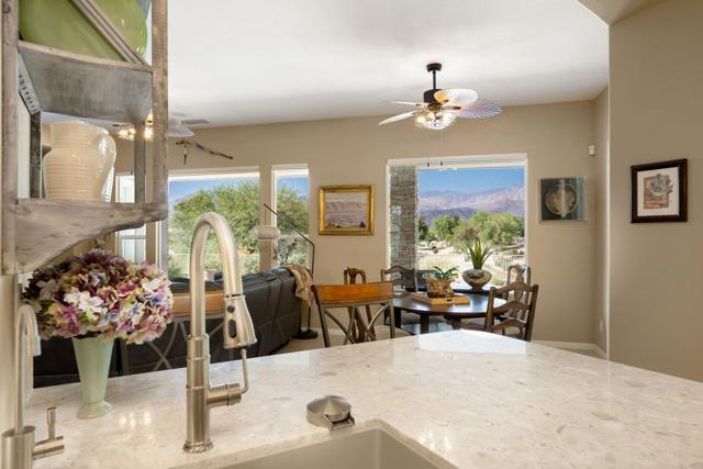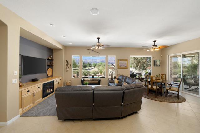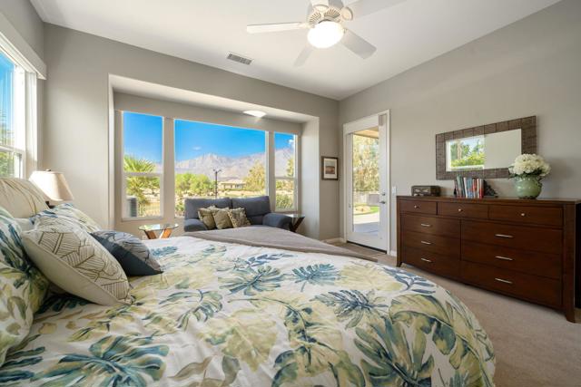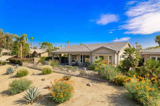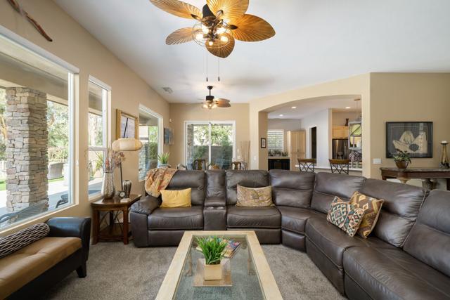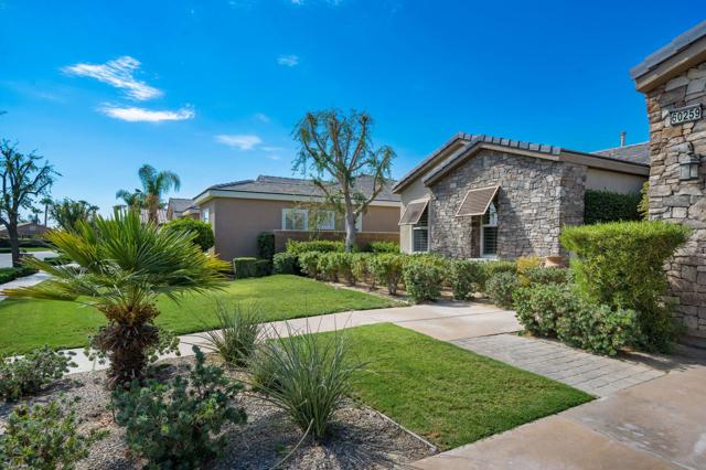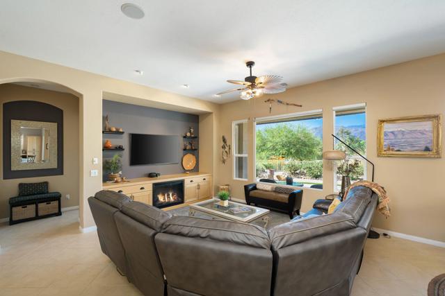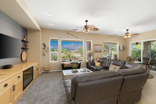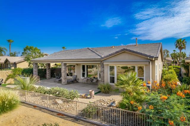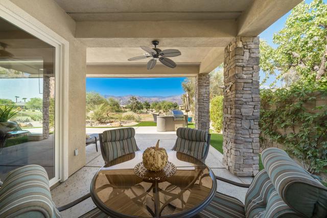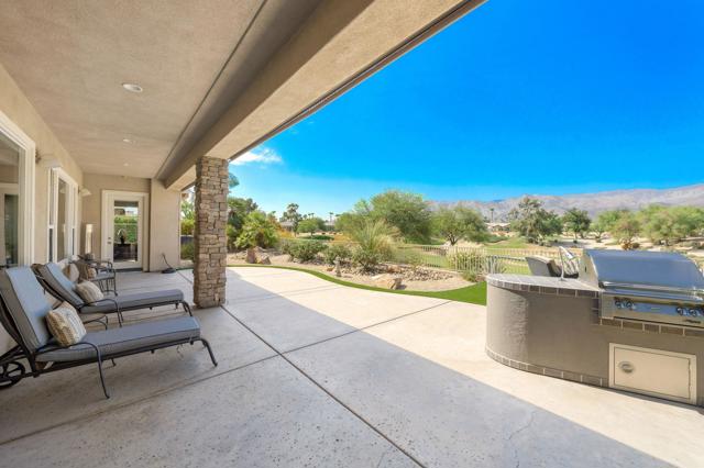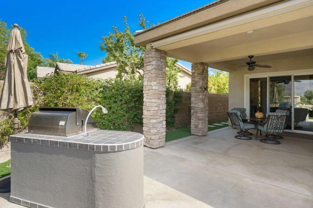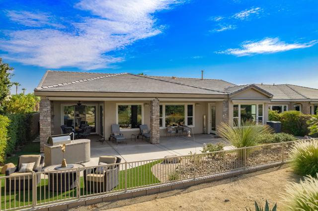 This home is located in the 55+ community of Trilogy La Quinta. Light & bright meticulously maintained Monarch model. 3 bedrooms, 2 baths, this floorplan offers 1845 sq ft of open living space. The great room has 10 ft ceilings and large windows providing ample natural light and views. The kitchen features stone counters, stainless steel appliances and a breakfast bar. The master bedroom has views to the golf course and Santa Rosa Mountains. House has king size bed in the master bedroom, Queen size bed in the guest bedroom and a fold out queen in the third room. The covered patio is great for relaxing. There's also a built-in BBQ and artificial grass are for taking in the views. Trilogy La Quinta is a 55+ gated community offering a vast array of amenities including golf, clubhouses, social activities, fitness centers, pools, sport courts, pickleball, tennis and so much more!