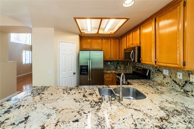 Spectacular end unit in a premium location — no neighbors on three sides. Private, large paver-accented yard with full privacy and a side gate opening to a generous greenbelt. Gourmet kitchen features granite countertops, decorative backsplash, stainless steel appliances and a walk-in pantry. Designer-quality upgrades throughout, including new second-floor flooring, recessed lighting, custom baseboards, window coverings, dual-pane windows, insulated garage door and Art Deco light fixtures. Exterior offers extra full-length driveway and lush landscaping. Located in award-winning Blue Ribbon schools, within walking distance to Aliso Viejo Middle School and close to the Town Center, library, toll road access, Aliso Viejo Golf Course and the Soka Performing Arts Center.