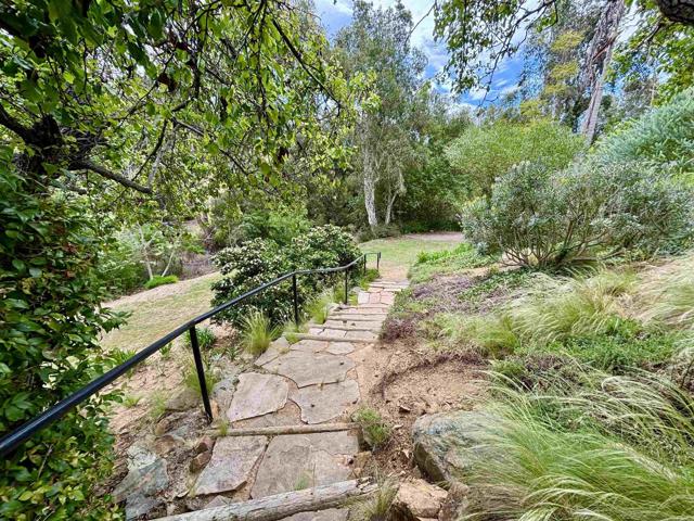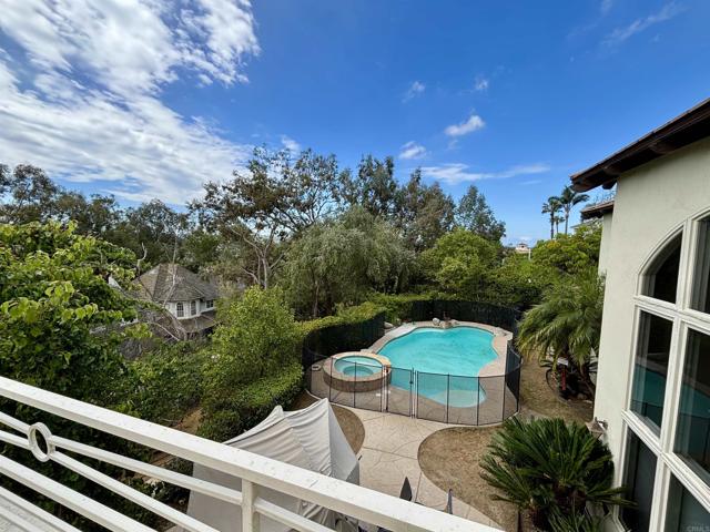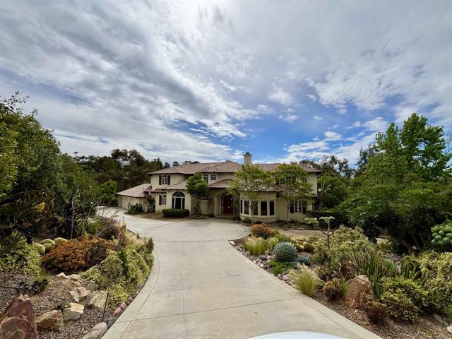 A rare renovation opportunity in one of North County San Diego’s most prestigious communities. Set on a lush, private acre behind gates, this resort-style estate offers a level of scale, privacy, and presence that is increasingly hard to find. A long, elegant driveway welcomes you through the gated entrance, unveiling a tranquil compound framed by mature trees, expansive grounds, and a solar-heated pool, creating a true private oasis with peaceful canyon views. Spanning approximately 6,388 square feet, the residence showcases timeless architectural design. A dramatic entry opens to expansive living spaces, including a dedicated great room ideal for entertaining. The primary suite is a true sanctuary, featuring a private view deck with canyon vistas and a peekaboo ocean view, along with a dry sauna, serene reading room, library/office, and a spa-inspired bath with a soaking tub perfectly positioned to capture the surrounding natural beauty. This property offers a spacious downstairs suite with walk-in closet, ensuite bath, and direct access to the pool for family and guests. The resort-style grounds are the heart of the property, including a solar-heated pool and surrounded by lush, established landscaping, offering both privacy and a peaceful, retreat-like setting. This four-bedroom cosmetic fixer presents an exceptional value-add opportunity, offering incredible bones, premier location, and the chance to modernize and create a true legacy estate.