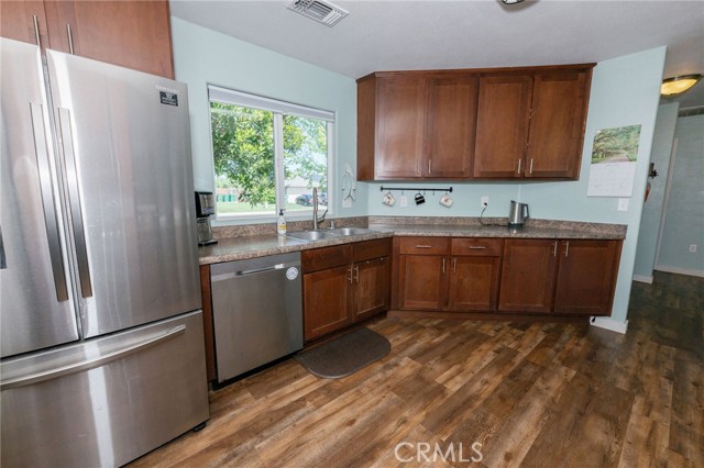 Tucked into one of Orland’s most loved neighborhoods, bordered by orchards and a nearby park and just a short 30-minute drive to Chico, this inviting 1561 sq ft, 3-bedroom, 2-bath home offers a blend of comfort, space, and everyday ease. From the moment you arrive, you’ll appreciate how well this home has been cared for—clean, welcoming, and truly move-in ready. Inside, the heart of the home is a light-filled great room with vaulted ceilings and two sliding glass doors that create an open, airy feel and an easy connection to the outdoors. The kitchen is both functional and welcoming, featuring stainless steel appliances, a breakfast bar for casual mornings, and a spacious walk-in pantry to keep everything organized. Whether you're hosting friends or enjoying a quiet evening in, the layout makes daily living feel effortless. The home offers thoughtful features throughout, including owned solar and a tile roof for long-term savings and peace of mind, along with dual sinks in both bathrooms for added convenience. The primary suite is a comfortable retreat, featuring two closets—including a walk-in—providing plenty of storage and functionality. Updated black hardware and fixtures bring a fresh, modern touch while still keeping the home warm and inviting. Step outside and you’ll find a backyard ready to enjoy year-round—large patios, a pergola for shaded afternoons, and two storage sheds provide flexibility for hobbies, gatherings, or simply relaxing in your own space. Beyond the home itself, the location adds to the lifestyle, with the nearby park offering walking paths, baseball and soccer fields, a duck pond, and an updated playground complete with a splash area—perfect for enjoying time outdoors close to home. This is the kind of home where life feels a little easier, a little slower, and a lot more enjoyable. sq ft, lot size & yr build taken from county records, buyer to investigate to their satisfaction.
