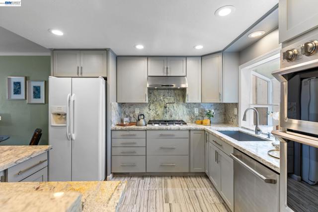 Enjoy a private backyard ideal for relaxing or entertaining, plus the convenience of a one-car garage offering secure parking and additional storage. Set in a peaceful and desirable community, this beautifully updated two-level townhome features a bright living room with wood flooring and fresh interior paint. The remodeled kitchen includes modern cabinetry, updated countertops, a stylish backsplash, recessed lighting, and tile flooring. Bathrooms have been upgraded with contemporary finishes, including an updated vanity, tile work, and shower. Additional features include dual-pane windows, central heating, and upstairs laundry. Community amenities include a pool. Conveniently located near shopping, dining, public transportation, and major commute routes.