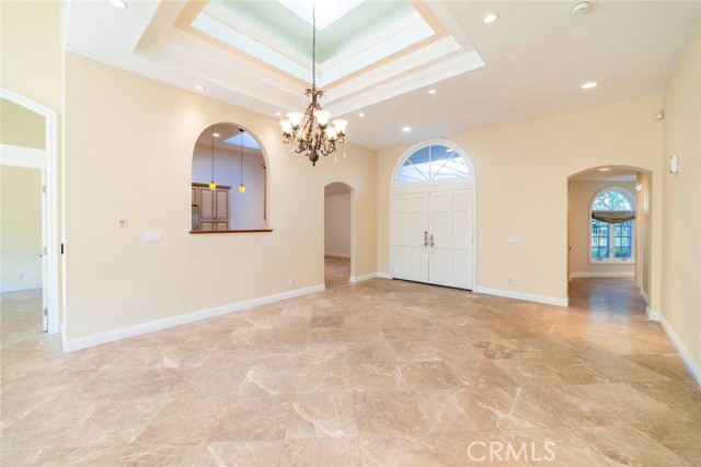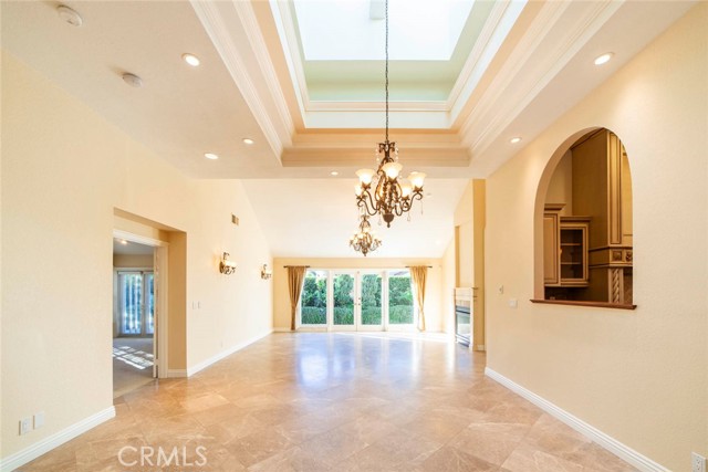 Welcome to this exquisite single-level home nestled in a tranquil community, where luxury meets comfort. The meticulously upgraded residence boasts a gated courtyard and a grand double-door entry, inviting you into a haven of sophistication. Spanish marble floors grace the interior, illuminated by a vented/lighted skylight that bathes the space in natural light. The well-designed layout features an abundance of built-ins and storage. A double-faced fireplace graces both the dining/living area and the primary suite, creating a warm and inviting ambiance. The primary suite is a retreat with a spacious ensuite and plush carpeting. Recent upgrades include new air conditioning, fresh painting inside and outside, and a beautifully landscaped front yard. Additional highlights include epoxy flooring and storage in the garage. Conveniently located near the stunning Monarch Beach, library, shopping, dining, and within an award-winning school district, this home offers the perfect blend of elegance and convenience for a refined lifestyle. (4th bedroom does not have closet, currently used as an office)