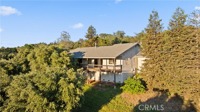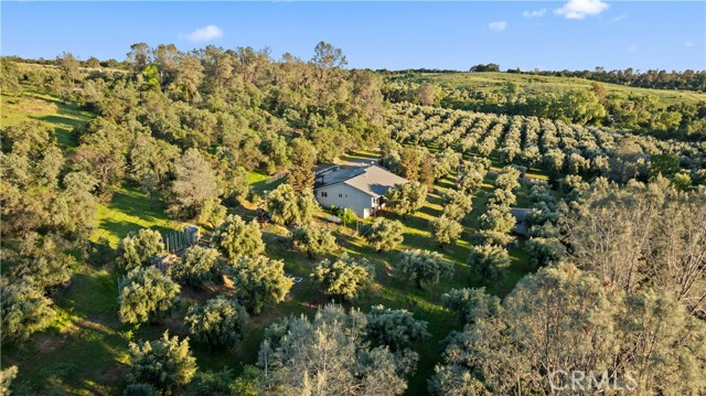 Custom country home with owned solar on nearly 6 acres with beautiful views, privacy, and a peaceful orchard setting. This inviting home features vaulted ceilings and an open-concept floor plan with no wasted space, creating a warm and functional layout. The home offers 3 bedrooms plus a bonus room currently used as an office, which could easily be used as a bedroom. Located on the opposite side of the home, it’s ideal for a mother-in-law setup or added privacy for guests. The spacious living room includes a fireplace and access to a large deck where you can take in the surrounding views. The kitchen features granite countertops and custom oak cabinetry with plenty of space for cooking and entertaining. The primary suite offers two large closets, a spacious bathroom, and access to a covered deck. Enjoy the benefits of owned solar along with country living at its best. The land offers plenty of space for animals, gardening, and outdoor living—perfect for those looking to bring their farm animals and enjoy a more self-sufficient lifestyle. Additional features include an oversized garage of approximately 700 sq. ft. with room for two vehicles plus extra space for a workshop, ATVs, or storage. There is also a basement storage area beneath the home with exterior access. The property is fenced with an electric gate. Conveniently located with easy access to Highway 70 via Lower Wyandotte and Ophir Road, this property offers the perfect balance of rural living and accessibility.