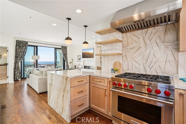 Panoramic ocean views, warm hardwood floors, and extensive modern renovations—this is the kind of home that makes you pause mid-conversation just to watch the sunset. Located in the prestigious Manhattan Beach Hill Section, you can find coastal living, privacy, and walkable trails, shops, and restaurants —not to mention the beach— just outside your front door. Tucked into one of South Bay’s most sought-after pockets, this location offers a rare balance of peaceful, elevated living with off-the-charts walkability—just moments from the Greenbelt, downtown Manhattan Beach’s top restaurants and boutiques, and the sand. Morning coffee strolls, sunset dinner plans, and spontaneous beach days are all right at your fingertips as well as the option to enjoy sweeping ocean views from the comfort of your couch. Opening the door to your new home, the entry level features two bedrooms—ideal for kids, visitors or a home office—connected by a beautifully finished Jack-and-Jill bathroom with Quartzite countertops and custom cabinetry. A dedicated laundry room and generous storage space round out the space. The full-floor primary suite feels like a sanctuary. Step onto your private balcony for morning coffee or a quiet reset, then unwind in the spa-inspired bathroom featuring a generous walk-in closet, custom dual marble vanity, open rainfall shower with multiple shower heads, soaking tub, and heated floors. On the top floor, a stunning great room with panoramic, west-facing ocean views takes center stage. Sunlight pours into the living, dining, and kitchen areas, creating an open space built for everyday living and entertaining. The kitchen features White Oak cabinetry, Quartzite countertops, stainless steel appliances, and a striking 6-burner WOLF range—paired with a farmhouse sink, soft-close drawers, and open shelving. A custom wet bar w/ matching ceramic tile backsplash ties everything together. This home was designed for easy and elegant entertaining. Step onto the balcony, fire up the grill, and enjoy the coastal breeze. Over the holidays, you’ll have a front-row seat to the Manhattan Beach fireworks. Additional highlights include a 2-car garage w/ extra storage, guest parking spot, 3 Hill Section parking passes, dual-zone A/C, central vac, a brand-new water heater, as well as brand-new doors, sliders, lighting, and sconces throughout. This is coastal living exactly the way it’s meant to be—and Hill Section homes with views like this rarely stay available for long.