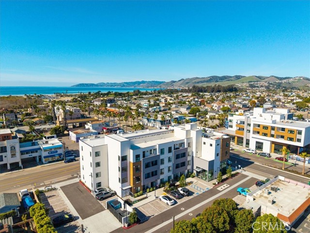 Ready to embrace elevated coastal living just blocks from the ocean? Palladium’s unique corner residence offers a rare opportunity to experience the best of Grover Beach in style. This 1-bedroom, 1-bath condo features a one-of-a-kind floor plan with dual balconies and captivating views straight down Grand Avenue to the Pacific—an everyday reminder that the beach is moments away. Designed to celebrate indoor-outdoor living, the oversized main balcony extends seamlessly from the living space—perfect for slow mornings with coffee, sunset unwinding, or simply enjoying the coastal breeze. A second private balcony off the bedroom creates a retreat, offering a quiet place to recharge and reconnect. Perched on the third floor, this corner unit is filled with natural light thanks to expansive windows and its premium positioning. The open-concept layout blends comfort and modern design, featuring sleek finishes, stainless steel appliances, and the convenience of an in-unit washer and dryer—all crafted with the quality you expect from Coastal Community Builders. Beyond the home, Palladium delivers a lifestyle. Residents enjoy secure access, dedicated parking, private storage, and a stunning rooftop deck designed for gathering and relaxing. Take in sweeping ocean views by day and twinkling city lights by night from the lounge areas and outdoor cooking space—an experience that truly sets this community apart. Whether you're looking for a full-time residence or a weekend escape, this home offers a unique blend of design, comfort, and effortless beachside living in one of the Central Coast’s most desirable new communities.