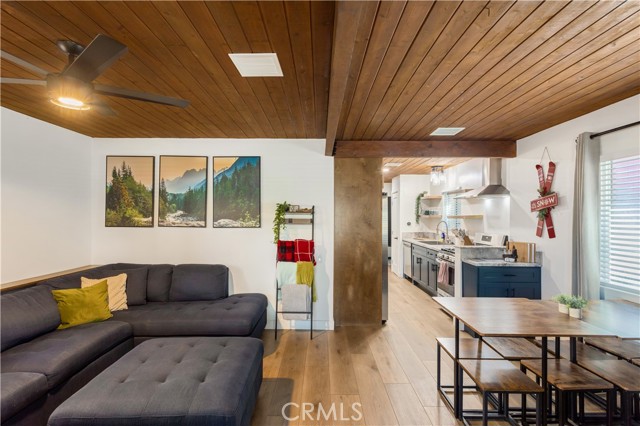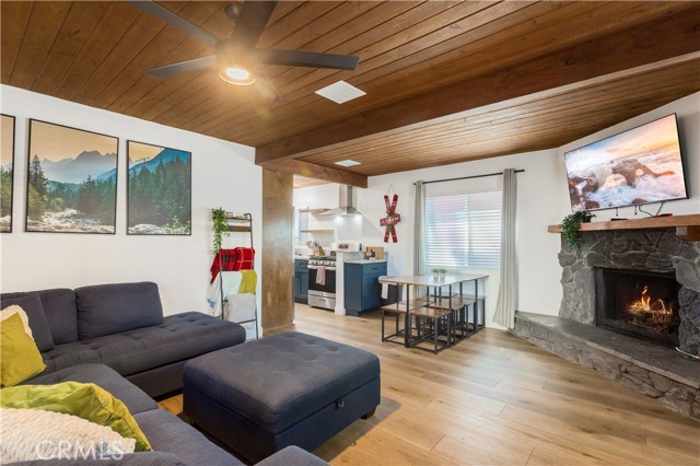Beautifully maintained 2-bedroom, 1-bath cabin in a prime Big Bear City location, close to the airport, ski/snowboard resorts, the Village, fishing, and boating. This turnkey property is an established Airbnb and comes with existing reservations, offering immediate income potential. Sold fully furnished, excluding a few personal items, and includes major items such as the refrigerator, washing machine, and beds. Features include a modern kitchen, comfortable living space, in-home laundry, front porch, and backyard ideal for entertaining. Great opportunity for a vacation home, full-time residence, or investment property.