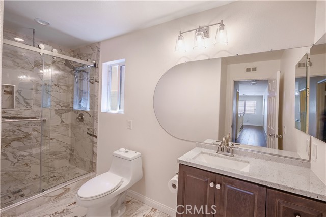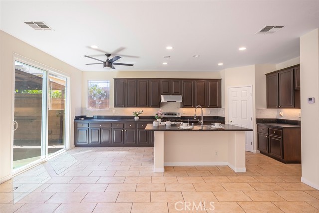 From convenience to comfort, this beautifully upgraded home offers the ideal Orange County lifestyle. Located in the sought-after Camrosa neighborhood near Twila Reid Park, this spacious residence features 5 bedrooms, 3 bathrooms, and approximately 2,858 sq ft of living space, including a highly desirable downstairs bedroom and full bath. Step inside to an open-concept layout filled with natural light, 9-foot ceilings, and a seamless flow designed for modern living. The recently updated kitchen showcases newer cabinetry, granite countertops, and a large island that opens to a grand family room complete with a stunning stone fireplace and built-in entertainment center. Recent upgrades within the last 3 years include interior paint, updated bathrooms, recessed and dimmable lighting with smart switches, and modern fixtures and fans throughout. The home is also equipped with a private security system and cameras for added peace of mind, along with built-in speakers throughout. The primary suite offers vaulted ceilings, abundant natural light, dual walk-in closets, and a spa-inspired bathroom featuring a soaking tub, separate shower, and dual sinks. Upstairs also includes three additional bedrooms and a convenient laundry room complete with washer, dryer, utility sink, and adjacent linen storage. The garage is thoughtfully equipped with built-in storage cabinets, a Tesla charger, water softener filtration system, and irrigation controls. Step outside to your private entertainer’s backyard featuring block wall fencing, a pergola with fan and lighting, BBQ setup, gas fire pit, artificial turf for low maintenance, and a beautifully curated succulent garden. Ideally located in the heart of Anaheim, just minutes from Disneyland, Knott’s Berry Farm, shopping, dining, and major freeways—this home truly has it all.