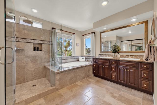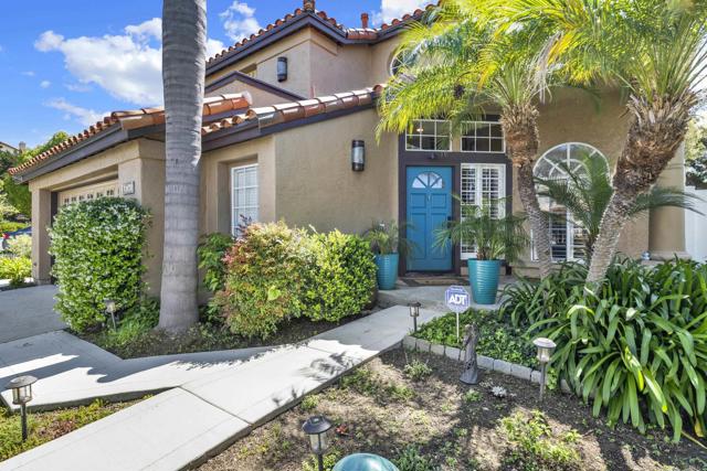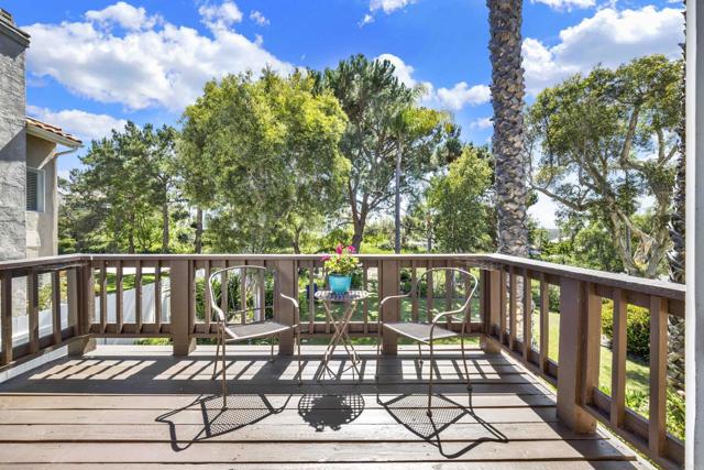 Located on a quiet cul-de-sac in the highly sought-after Ocean Terrace neighborhood, this exceptional and well maintained home is the perfect opportunity for a first-time buyer or those seeking flexible living arrangements! Thoughtfully designed, the layout is ideal for potential multi-generational living, featuring not one, but two spacious primary suites with private balconies on the second floor, along with a third bedroom and full bathroom on the main level! The home offers both formal living and dining rooms, as well as a separate family room and additional dining area, providing ample space for everyday living and entertaining. Three fireplaces...located in the main primary suite, living room, and family room add warmth and charm throughout the home. The beautifully refreshed kitchen showcases Silestone countertops, stainless steel appliances, and with it's picturesque backyard views, cooking will be a joy everyday! The main primary suite is a true sanctuary, complete with a large en-suite bathroom featuring dual vanities, a separate walk-in shower, a jetted tub, and a spacious walk-in closet. Enjoy your morning coffee or evening sunsets from it's private balcony with peek-a-boo ocean views, along with scenic vistas of the surrounding mountains and foothills. The second upstairs suite also includes it's own full bathroom and a generous private balcony. The giant park-like backyard backs to a serene greenbelt area and has plenty of room for a swimming pool, cabana or whatever your heart desires! Additional highlights include a complete roof re-papering completed in December 2024, offering added peace of mind for the new owner! Ideally located just minutes from beautiful sandy beaches, with Calavera Preserve and it's scenic hiking trails only a few blocks away, as well as convenient access to world-class dining, shopping, and golf. This stunning home is truly move-in ready...nothing to do but unpack and start making memories!