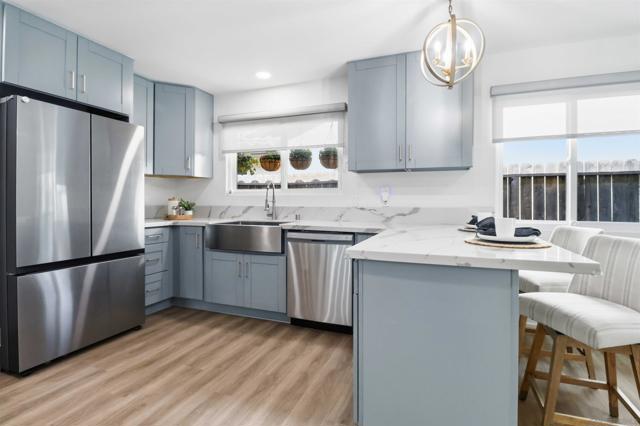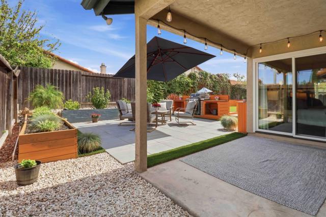 Your wait is over! Welcome to this stylish, turnkey, single-level stunner, where remarkable upgrades, natural light, and a perfect ambience combine for an impressive home. Boasting over $150,000 in modern updates, vaulted ceilings, and an open, sunlit layout, this property captivates from the moment you step inside. The show-stopping kitchen is an entertainer’s dream, designed for everything from your morning coffee to elaborate dinner parties. It features quartz countertops, a farmhouse sink, and sleek stainless-steel appliances. Luxury vinyl plank flooring and vinyl windows and sliders extend throughout the home, pairing beautifully with the tastefully updated tile bathrooms, newer vanities, and contemporary fixtures. Plus, with nine solar panels and a newer HVAC system, you’ll stay comfortable year-round. Out back, this property continues to impress with a private yard, a covered patio, and an open space perfect for lounging. A built-in BBQ center is ideal for entertaining, while the dedicated play area is sure to bring joy to kids and neighbors alike. Stylish, comfortable, and completely move-in ready, this home doesn’t just meet your expectations—it exceeds them in every way!