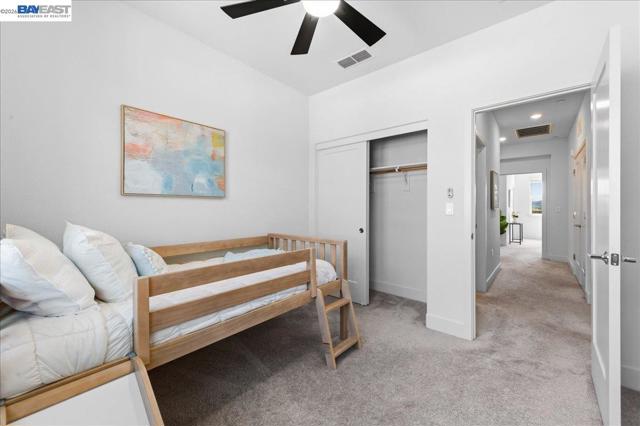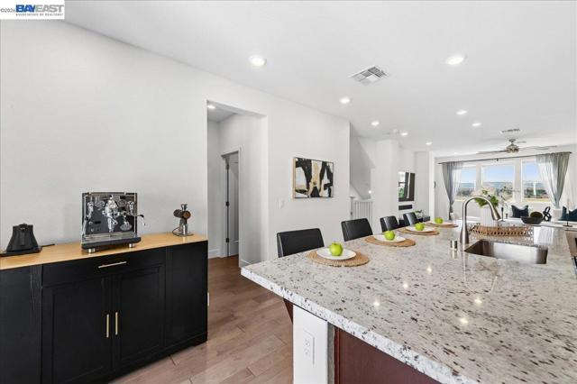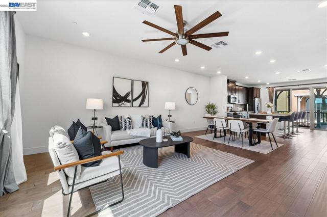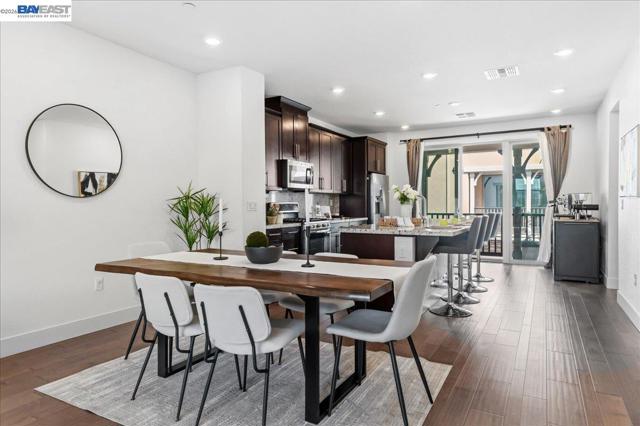 Welcome to this sun-drenched, extensively upgraded 4 bed, 4 bath home offering 2,097 sq ft of living space, with breathtaking rolling hill views and no front neighbor, offering exceptional privacy, natural light, and a serene sense of space. Thoughtfully designed with model-home style and modern elegance, every detail feels refined yet inviting. On the first floor, a private bedroom and full bath provide ideal flexibility for guests, multigenerational living, or a private office. The second floor opens to a bright and expansive living area that flows seamlessly into a designer kitchen featuring upgraded cabinetry, stylish backsplash, extended countertops, and gas cooking, perfect for both entertaining and everyday ease. A private balcony extends the living space outdoors, ideal for morning coffee or evening relaxation. The upper level features three additional bedrooms, offering comfort and a peaceful retreat for family living. Enhanced with premium flooring, a water softener, EV charger, and well-planned storage for everyday convenience. Located in the sought-after Irongate community, this home is just moments from top-rated Cottonwood K-8 and Emerald High, plus shopping, dining, BART, and easy freeway access. No Mello-Roos adds exceptional value. Don’t miss it!