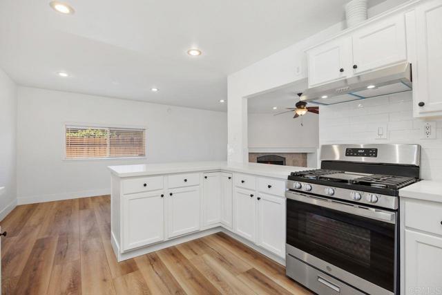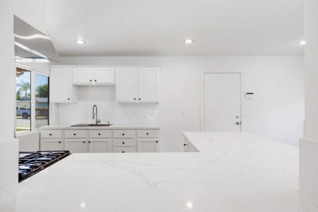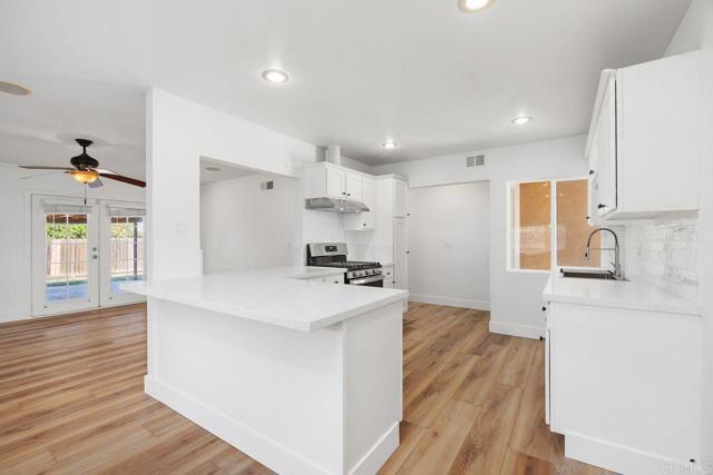 Turnkey single-story perfection in Mission Valley Estates! This beautifully remodeled 3BR/2BA, 1,196 sq. ft. home features a modern, open floor plan with high-end finishes. The chef-inspired kitchen boasts stunning white quartz countertops, while new luxury vinyl flooring, fresh paint, and recessed lighting create a contemporary feel. Both bathrooms have been fully updated with stylish finishes and new vanities. Enjoy the spacious 6,000 sq. ft. lot with a large covered patio perfect for outdoor dining and entertaining. Additional highlights include leased solar for energy efficiency, a 2-car garage, and a prime location just steps from Libby Elementary and close to dining and shopping. Move-in ready with no HOA—this Oceanside gem is a must-see!
