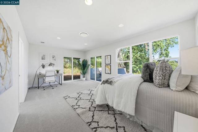 1715 Greenhills Ct delivers 4,139 sq. ft. of contemporary living with a layout that's genuinely hard to find, set on a quiet court minutes from downtown Lafayette, with easy highway and BART access. The family room frames unobstructed Mt. Diablo views, and beautifully upgraded flooring flows throughout the first floor. The kitchen has been refreshed with clean, modern finishes and features a custom built-in pantry, perfect for the home chef. The renovated bathrooms, living room fireplace, formal dining room, and breakfast nook add a warmth the square footage alone doesn't capture. The primary suite features a renovated bath and custom-built closet, with two secondary bedrooms privately positioned on the same level. A separate ensuite, up its own staircase, offers real versatility, au pair suite, guest retreat, or a private home office completely removed from the rest of the home. An expansive hillside lot carries those Mt. Diablo views beyond the family room. A large solar system with substantial battery backup keeps energy costs in check year-round. Attached garage with overhead storage and artificial grass complete the package. Acalanes Union High School District. A flexible, well-finished home with more upside than most. Views: Ridge