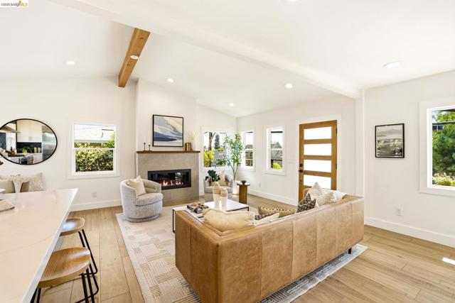 Reimagined Contemporary in the Heart of Glenview. Thoughtfully rebuilt from the studs up by a design-focused couple, including a structural engineer, this Glenview home blends modern comfort with everyday ease. Soaring cathedral ceilings, a striking floating gas fireplace, and wide doors opening to a private rear garden with level lawn and play structure create a setting made for gathering and good living. The chef's kitchen features a large quartz island, custom cabinetry, stainless appliances, and a pot filler, while four bedrooms, two additional flex rooms, and sanctuary baths, including a deep soaking tub, offer space that adapts to every need. A lower-level den, dedicated laundry, and garage with workshop add flexibility, while seismic improvements and tankless hot water provide lasting peace of mind. Steps from Paulista Brazilian Cafe, Marzano, and Bellanico, close to Glenview Elementary, and with quick Bay Bridge access to San Francisco, this is Glenview living at its finest.