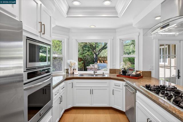 Single-level cul-de-sac home shines w/floor-to-ceiling updates. Steps from Danville’s Sycamore Valley 700-acre open sp preserve, walking trails. Northridge comm pool, tennis cts, clubhouse. 2037 +/- light-filled SF. 4 bds. 2 bths. Soaring ceilings, detailed millwork, crown molding, wainscot. Andersen drs, fresh int paint, eng. hdwood flrs, recessed & updated lights. Double frnt dr entry. Formal living rm w/gas frpl. Formal dining rm. Chef’s kitchen. SS appls. GE 5-burner gas cktp. GE French dr refrigerator. Bosch dw. Built-in oven, microwave. Granite counters. Peninsula island/brkfast br. New & freshly painted cabinetry. SS sink. Casual dining w/built-in banquette seating. Adjacent family rm w/divided French drs to bkyd. Primary suite has vaulted ceiling, slider to bkyd, dual reach-in closets. En suite w/dual-sink vanity, tiled flrs, coffered ceiling, updated fixtures, tub/shwr combo. Updated 2nd bthrm w/dual-sink vanity, tub/shwr combo. Inviting ultra-pvt bkyd w/no rear neighbors / hillside views. Patios. Built-in bbq w/frig. Mature shade trees, lush garden beds, sprawling lawn. Side meditation garden w/fountain, foliage. 2-car garage. New epoxy flr. Storage cabinets, wk bench. Central AC. Near top-rated SRVUSD schls, downtown shops, restaurants, Mt. Diablo, freeways.