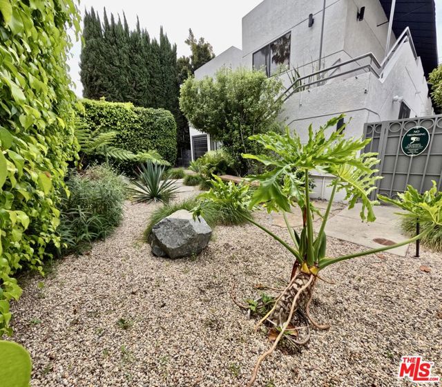 Moments from West Hollywood's most iconic destinations, this 2-bedroom, 2-bath residence is located within an intimate three-unit boutique building, offering a rare combination of privacy, design, and immediate access to premier dining, shopping, and lifestyle amenities. Interiors are bright and refined, anchored by a skylight and fireplace that create warmth and architectural character. The kitchen features European custom cabinetry, integrated appliances, and an extended bar seating area connecting the kitchen and dining space, designed for both everyday living and elevated entertaining. Both bedrooms function as private suites with en-suite baths and walk-in closets. The primary suite includes a Juliette balcony, while the secondary suite offers flexibility for a home office or additional living space. The residence includes in-unit laundry, dedicated storage, and gated side-by-side parking for two vehicles. A shared landscaped rear yard unfolds with multiple seating areas, string lighting, and lush foliage, offering a calm outdoor setting. A landscaped front garden enhances the arrival experience. Ideally positioned near Melrose Place, Santa Monica Boulevard, the Sunset Strip, Erewhon, Catch LA, Craig's, Gracias Madre, and Equinox West Hollywood, placing the best of the city's dining, wellness, and entertainment within close proximity.