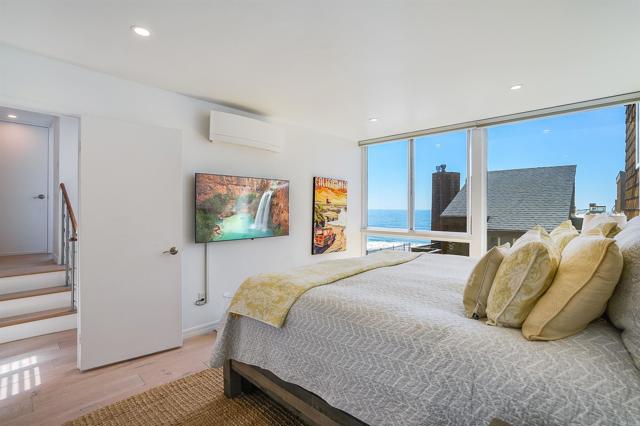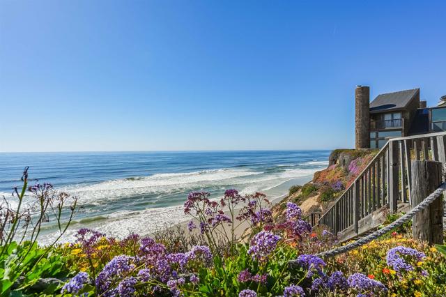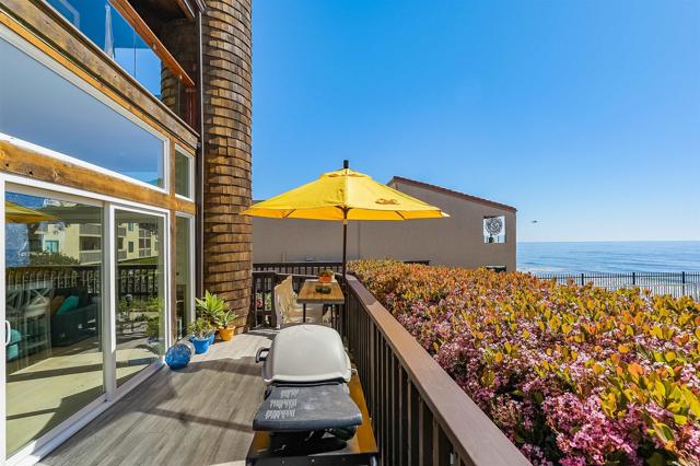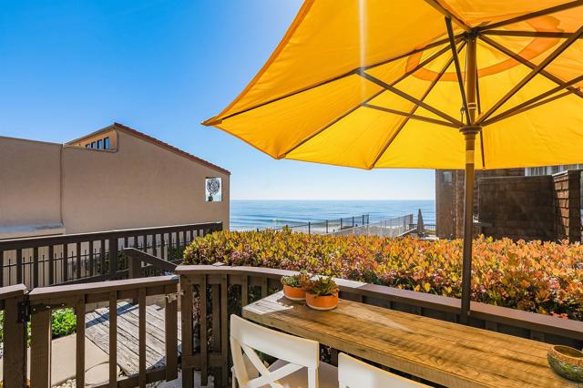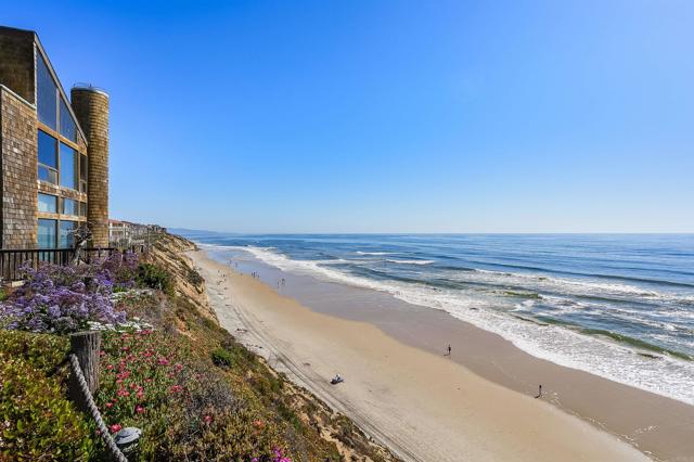 Available September 1, 2026. Newly remodeled ~1,400 sq ft oceanfront condo located in a quiet corner of the Seascape Shores complex with private staircase access to the beach. Open-concept floor plan featuring living room with fireplace, flat-screen TV, and large sectional. Floor-to-ceiling sliding doors open to an oceanfront terrace with panoramic views, ideal for indoor-outdoor living. Main level includes a fully upgraded kitchen with stainless steel appliances and a remodeled full bathroom. Upper level offers three ocean-view bedrooms with birchwood flooring, flat-screen TVs, walk-in closets, and en-suite remodeled bathrooms. Primary suite features dual sinks and a spa-style rain shower. Community amenities include a heated pool and spa. Additional features: private garage parking, split-system heating and A/C, electric blinds, and high-speed internet. Prime coastal location with direct beach access.