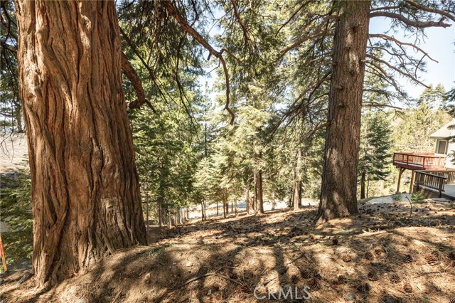 Treed Lot tucked away on a private road with Great Forest Views Buyer to investigate all building codes with appropriate agencies and confirm fees for connection to services. Check with Running Springs Water for water and sewer, Socal Edison for Electric and Socal Gas for natural gas connections.