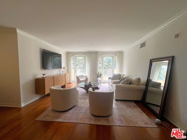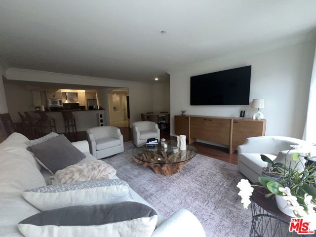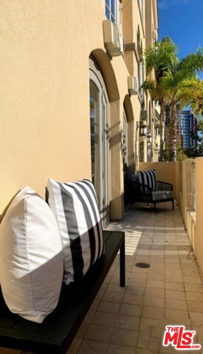 This single-level corner unit is filled with natural light and features a seamless indoor-outdoor flow, with a wraparound patio extending from the dining area to the living room and primary suite, creating a true "home-like" feel. Thoughtfully updated throughout, the unit showcases modern cabinetry, a fireplace, upgraded lighting, a security system, and controlled heating and air conditioning. The gourmet kitchen is equipped with granite countertops, high-end appliances, and a convenient breakfast bar-perfect for both everyday living and entertaining. The spacious primary suite includes a large walk-in closet and a luxurious en-suite bathroom with dual sinks and a soaking tub. The second bedroom is well-sized, with ample closet space and easy access to a full bathroom just outside the room. Multiple living and dining areas provide flexibility for both relaxing and hosting. Additional features include in-unit laundry and the option to rent furnished or unfurnished, with custom, high-quality pieces available. Residents enjoy premium amenities such as a rooftop deck with panoramic views, controlled building access, and two secured parking spaces. Ideally located near UCLA, Santa Monica, Beverly Hills, and Century City, this home offers easy access to top-tier dining, shopping, services, and the local farmers market, making it perfect for enjoying Brentwood's vibrant lifestyle.