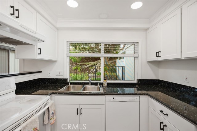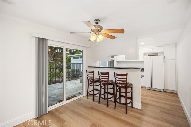 Beautifully upgraded: New LVP Flooring throughout, Freshly painted Inside, Remodeled Kitchen with new Cabinets, New Window coverings, Remodeled baths, Sky lights, Enter in the long Hallway to large living and dining opening in the inviting SUN Room. Specious Kitchen with new cabinets, granite Counters updated appliances, dual sinks, and a large window. Private patio yard with BBQ. Very long Garage with built in cabinets , Washer, Dryer and more storage cabinets. Laguna woods offers many amenities. Very popular community for Senior living. Charming single level condo located in Laguna Woods a 55+ senior community. Absolutely gorgeous home with only one shared wall that includes an attached oversized one-car garage and driveway. You will love this beautiful kitchen with custom cabinets, and granite counter tops,. Both bathrooms have been remodeled and the primary bath has a walk-in bathtub. The laundry is located in the garage. As part of the esteemed guard-gated community of Laguna Woods, you will enjoy access to golf courses, tennis courts, fitness centers, swimming pools, 7 clubhouses, theater, community library, and social clubs and activities!.