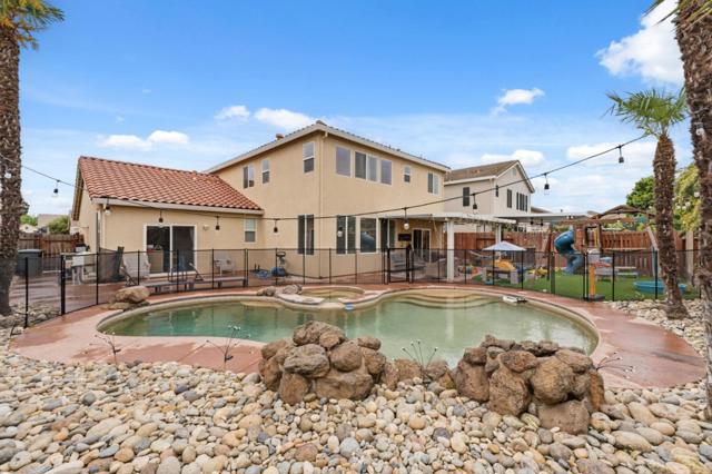 Beautifully updated 4 bedroom, 3 bathroom home offering the perfect blend of comfort, upgrades, and California indoor-outdoor living. Step inside to an open concept kitchen and family room with high ceilings and recessed lighting throughout, creating a bright and inviting space ideal for both everyday living and entertaining. The versatile floor plan includes a full bedroom and bathroom on the main level, while upstairs features a spacious loft and a dedicated office, perfect for remote work or additional living. This home has been thoughtfully upgraded with a new AC and heating system, a new whole house fan, updated pool equipment, dual-pane windows, and a water softener for added efficiency and convenience. The spacious primary suite features a custom walk-in closet with built-in shelving. Enjoy a private backyard oasis with a heated pool and hot tub, designed for year-round relaxation and entertaining. Additional highlights include a 3 car garage and a 220V electric vehicle charger. Located in a desirable neighborhood near local schools, parks, shopping, and dining, this move-in-ready home offers space, functionality, and modern upgrades throughout.