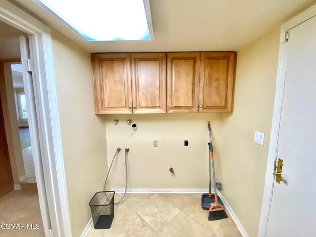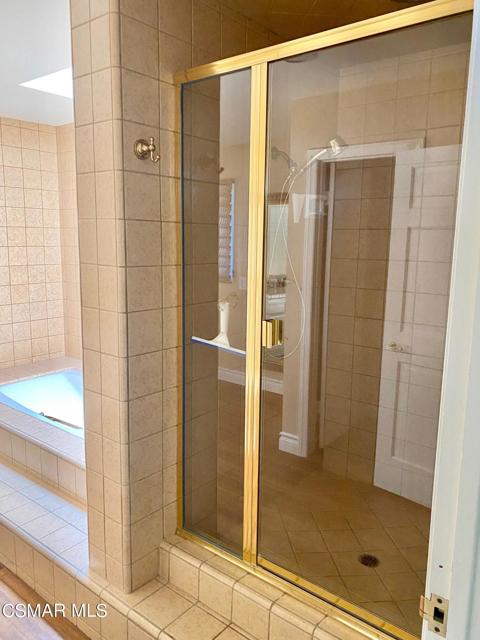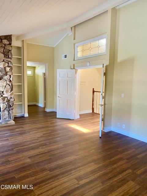 Charming and peaceful Ben Johnson Fairway home in the heart of North Ranch. Spacious 3 bedroom, 2.5 bathroom layout features hard floors throughout, crown moldings, high beamed ceilings, and 2 fireplaces. The gourmet kitchen offers stainless steel appliances (refrigerator included), lovely cabinets, granite counters, recessed lighting and portable island. The warm & inviting living room features a fireplace, many large windows, French doors to the patio and an entertaining bar leading to the dining room. The tranquil private patio with fountain wall will relax you immediately. The master suite is exquisite with it's own balcony, dramatic fireplace, high ceilings, walk-in closet, and large master bath.
