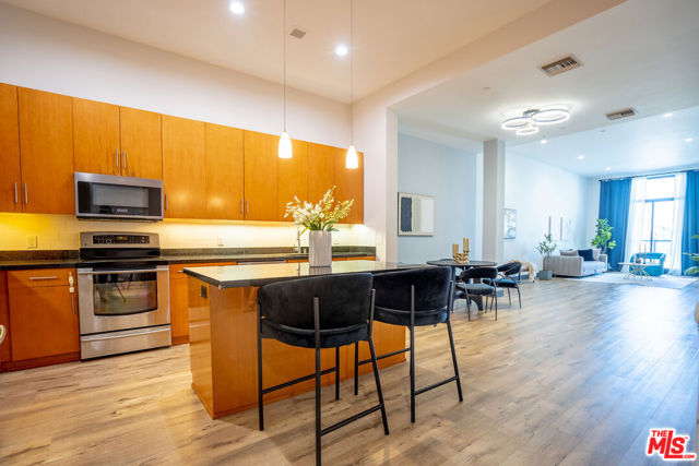 The most luxurious and desirable high-rise condominium "The Summit on Sixth" in Mid-Wilshire / Koreatown. The Summit is located in the prime location as it is only a block away from Wilshire Blvd. and Vermont Ave., close to all kinds of transportation, entertainments, banks, restaurants, markets and more. Unit 205 offers a huge masterbedroom + 2 full bathroom and a good size 2nd bedroom with 11.5' high ceiling, facing the North view very well shows Hollywood, Los Feliz, and Griffith Observatory. The unit also boasts newly installed trendy vinyl floors, huge island and granite top, sleek and modern open style kitchen, and also fully equipped with luxury stainless appliances. You can enjoy fully loaded amenities such as virtual screen golf system, dry sauna, fitness center, concierge, 24hr security, on-site management, and much more.